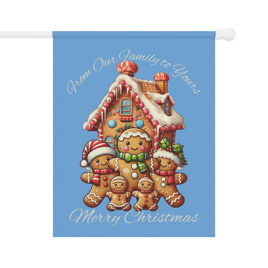 Garden Flag - Christmas - Gingerbread Family (01a - Blue)