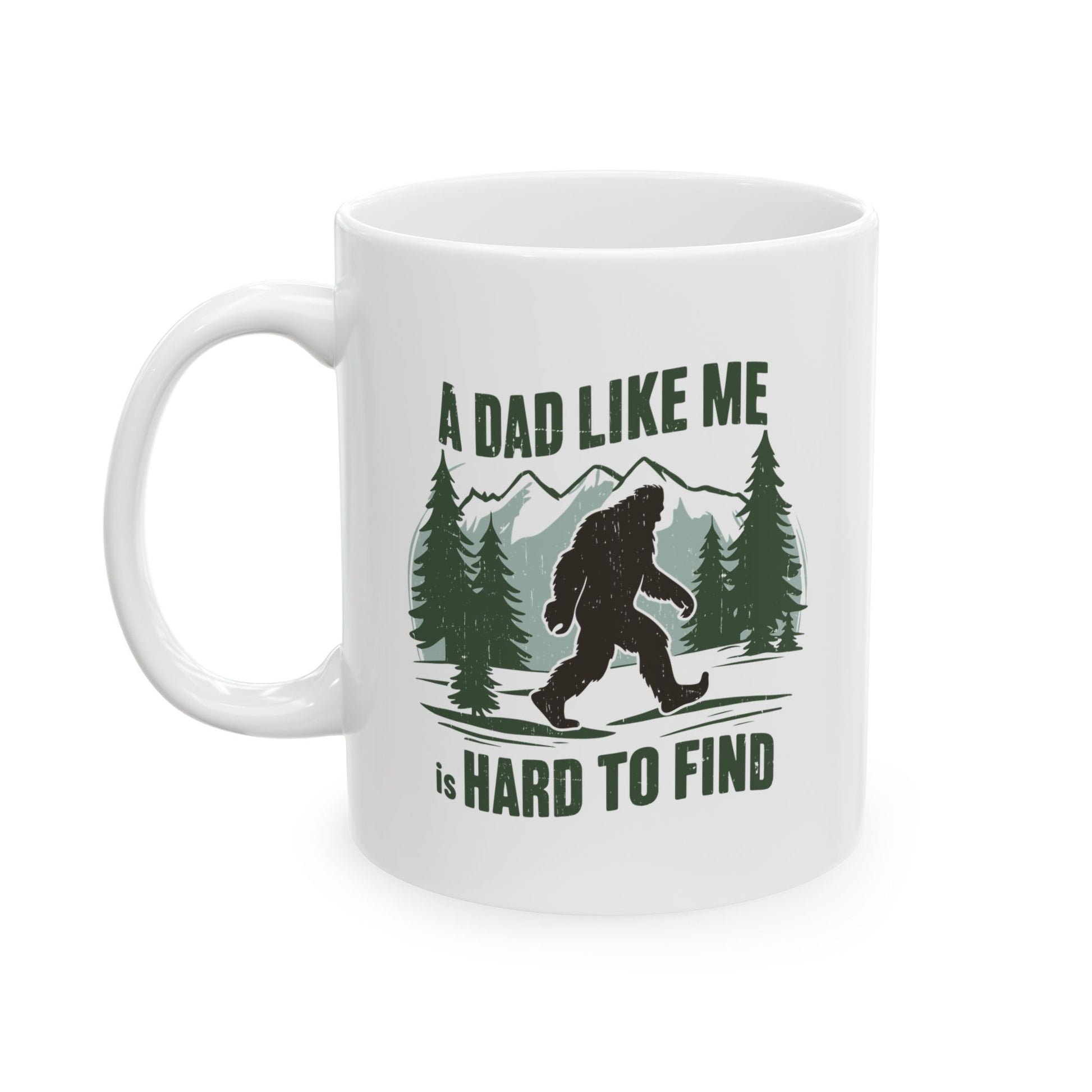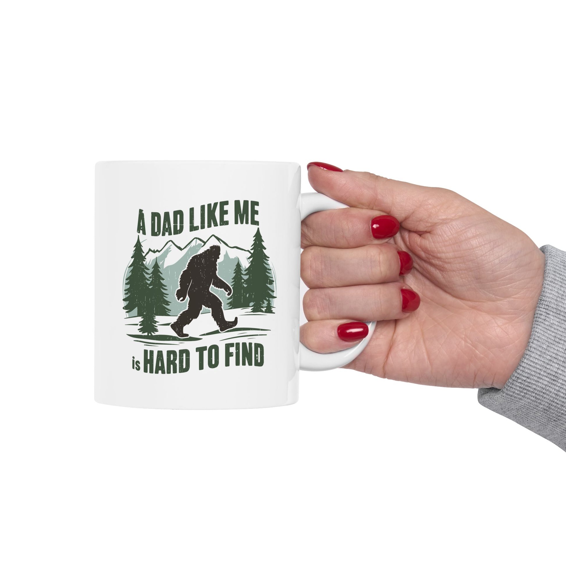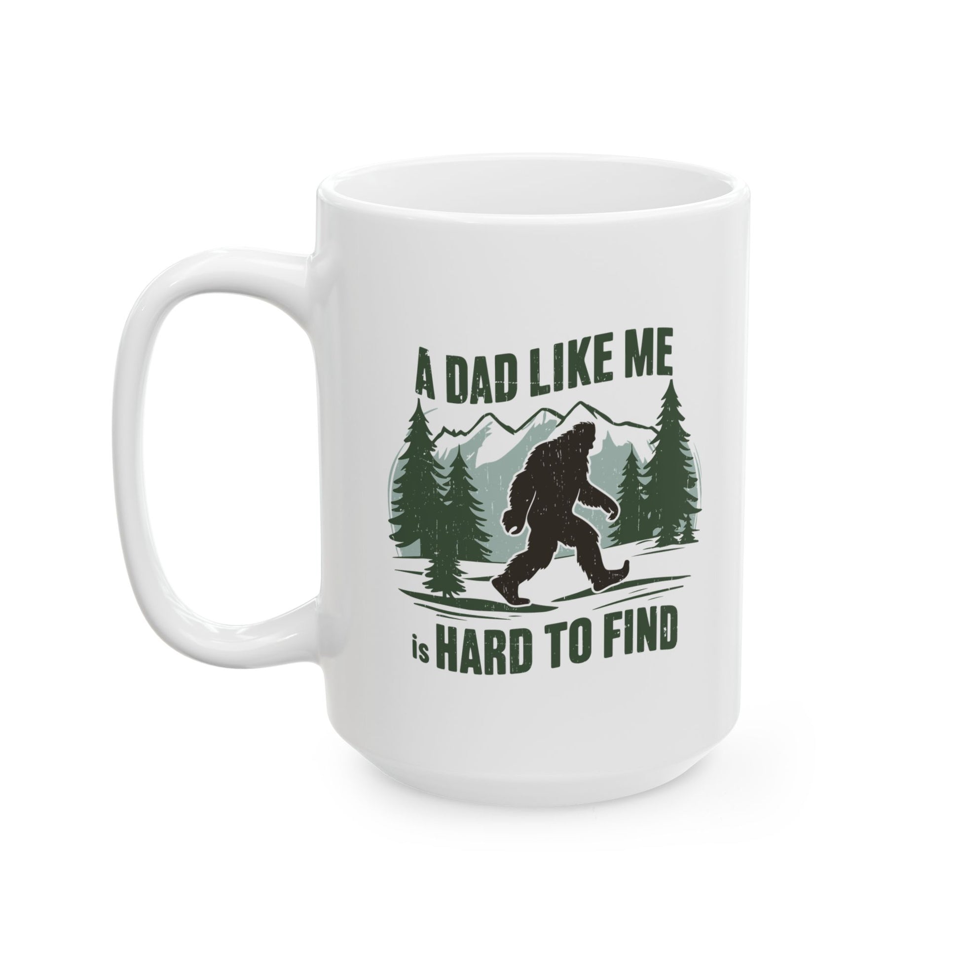 This ceramic mug features an Bigfoot strolling through the woods with a quote 'A Dad like me is hard to find'. It's the perfect dad style item for all those typical dad dads. Makes a great gift or something to buy yourself to show your dad status to the world. Perfect for Father's Day, birthdays, or just to show appreciation for dad. Suitable for adults.