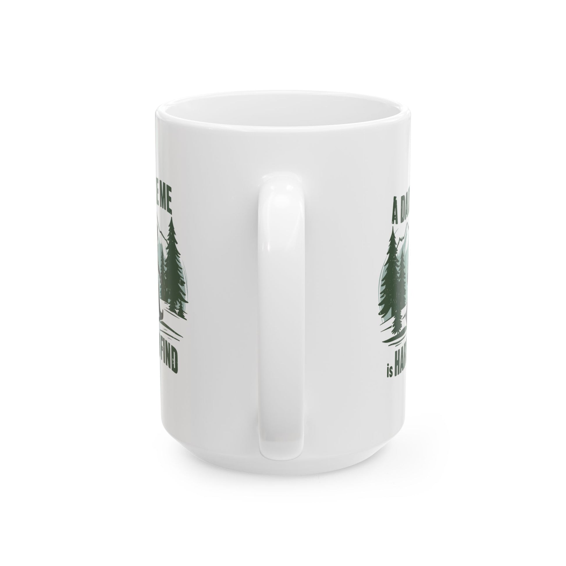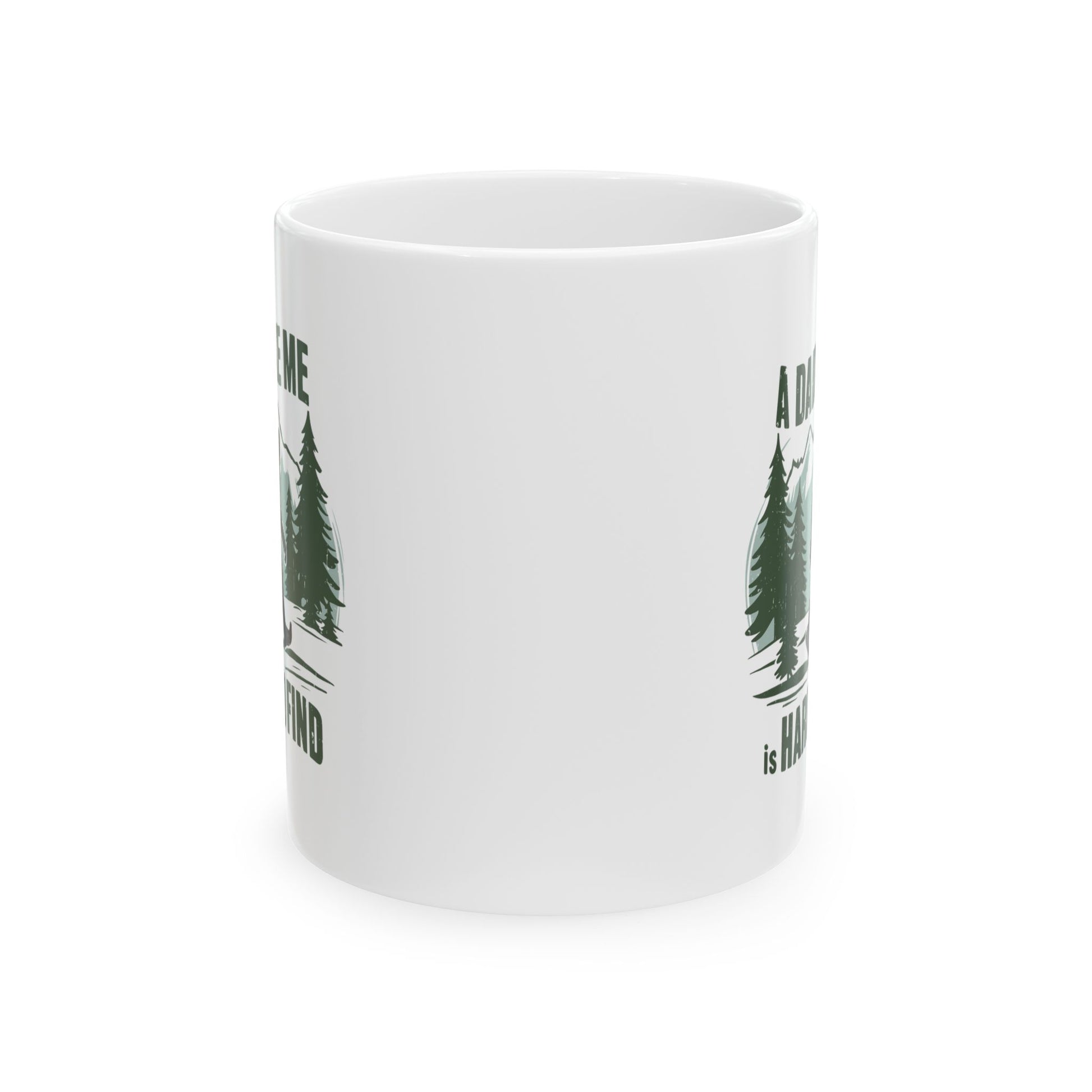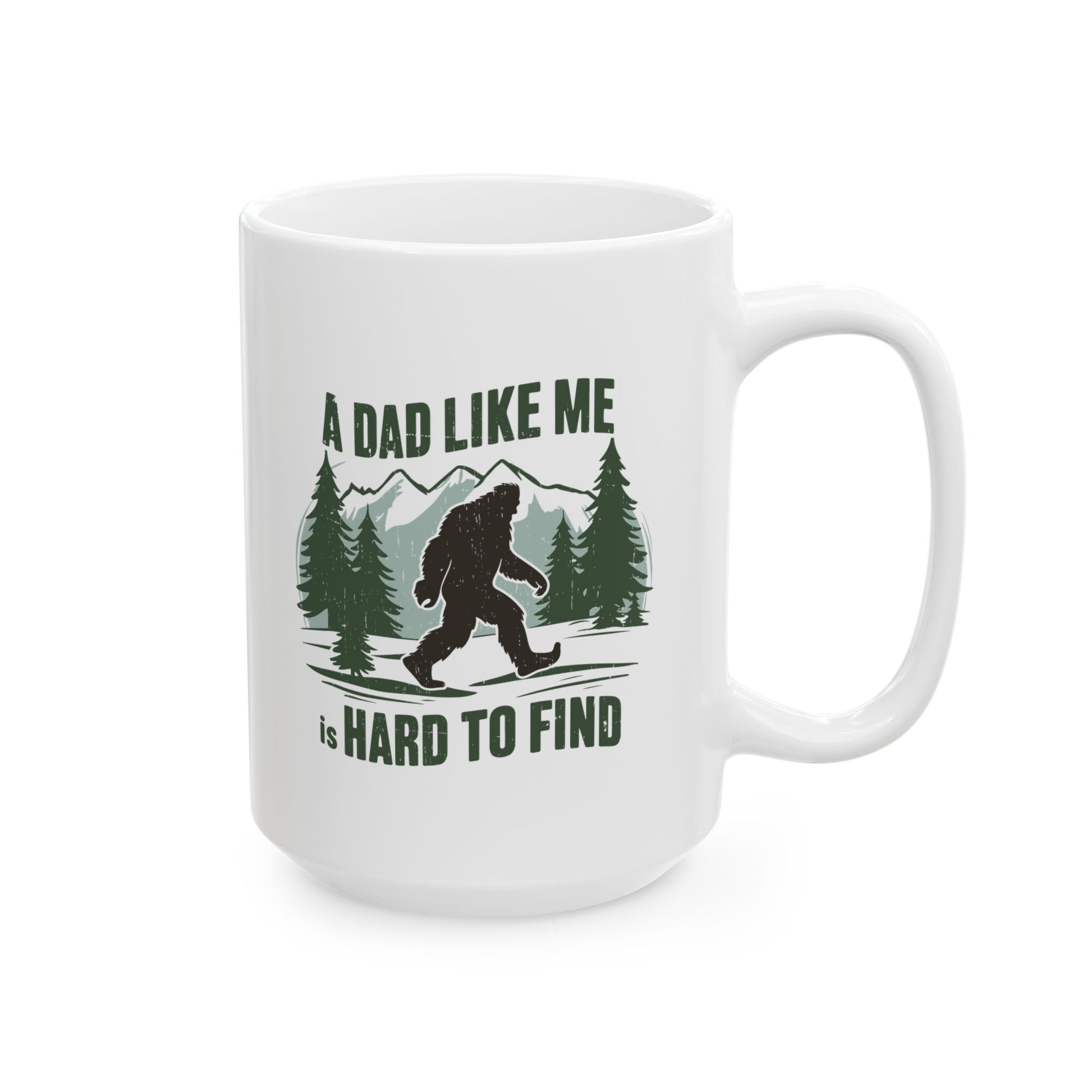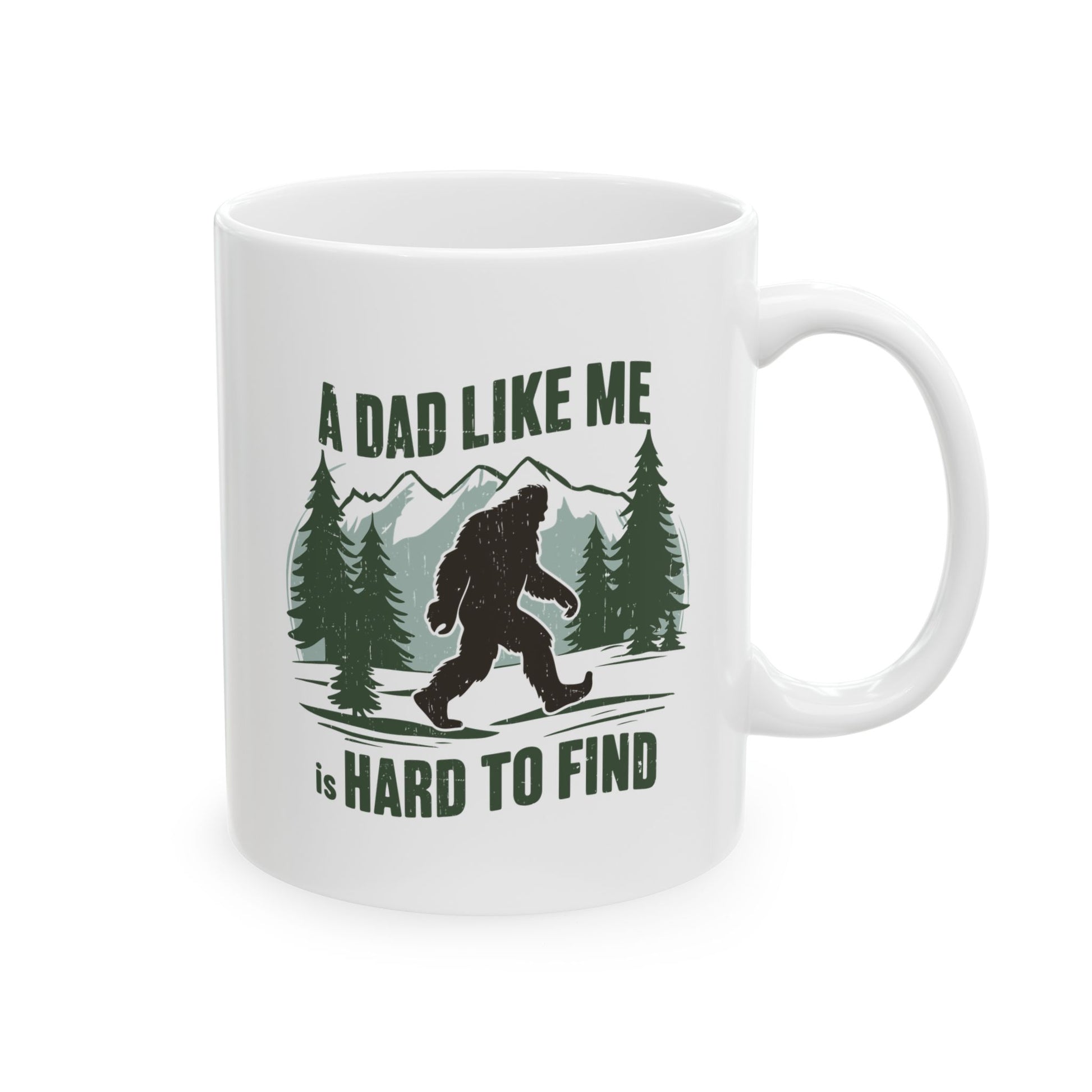 This ceramic mug features an Bigfoot strolling through the woods with a quote 'A Dad like me is hard to find'. It's the perfect dad style item for all those typical dad dads. Makes a great gift or something to buy yourself to show your dad status to the world. Perfect for Father's Day, birthdays, or just to show appreciation for dad. Suitable for adults.