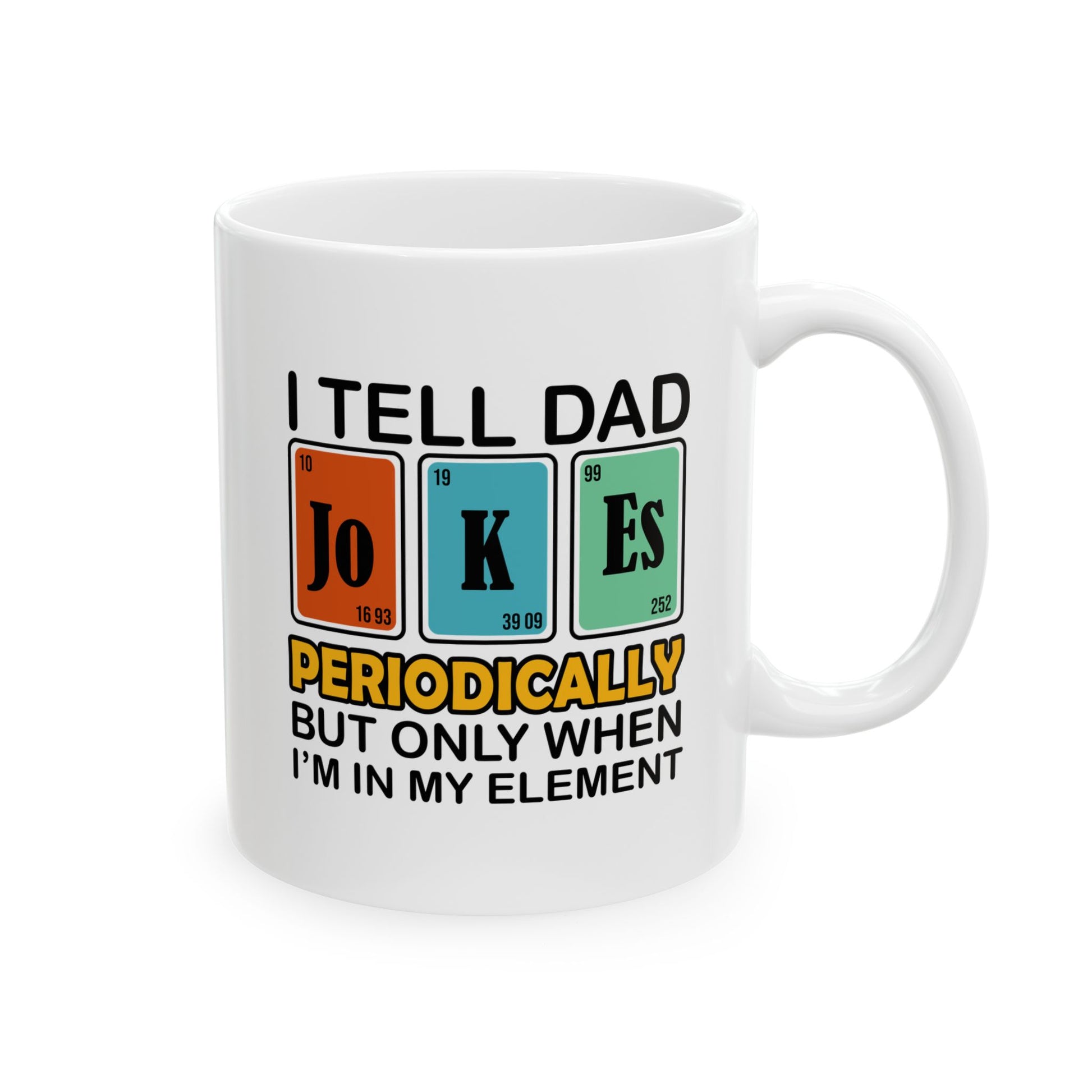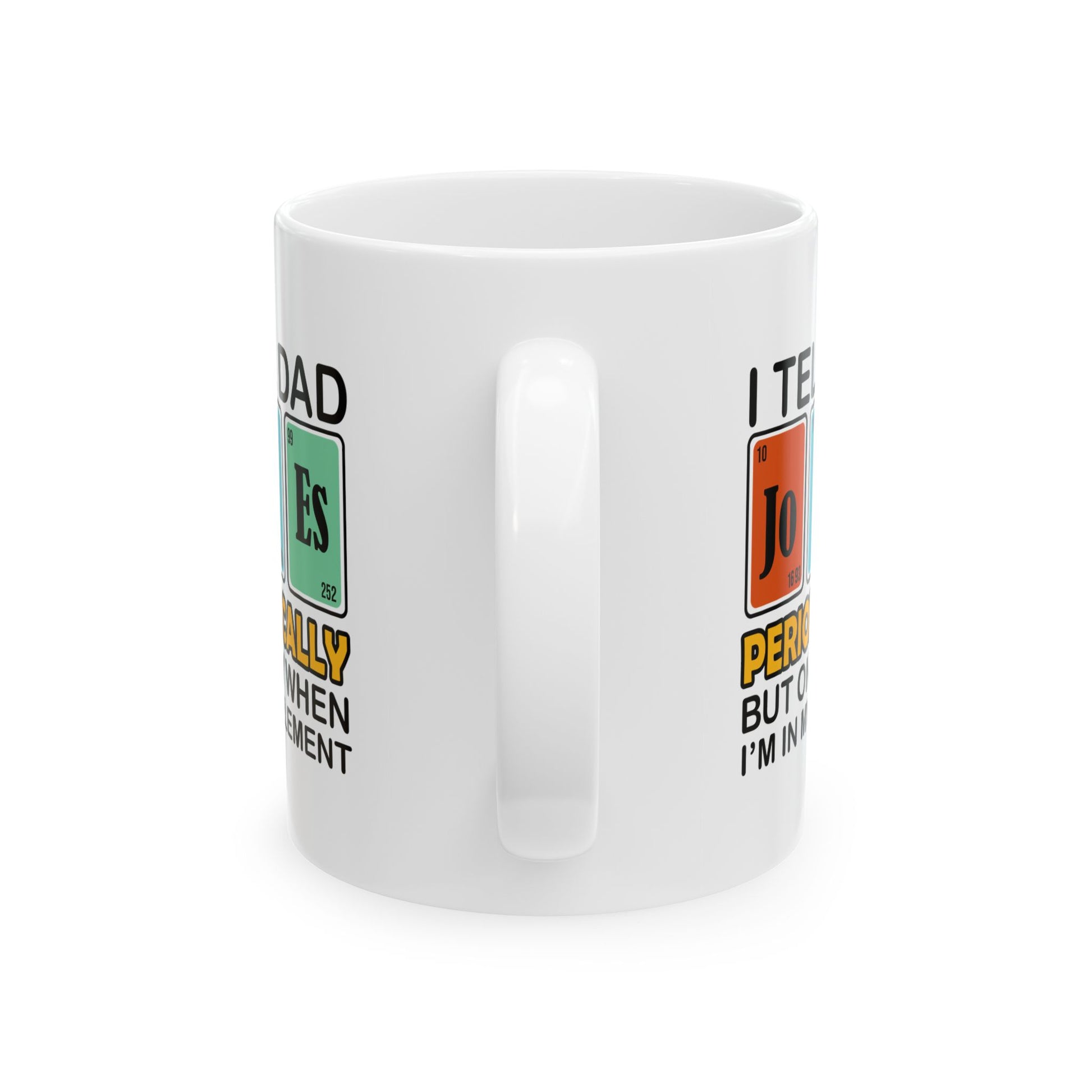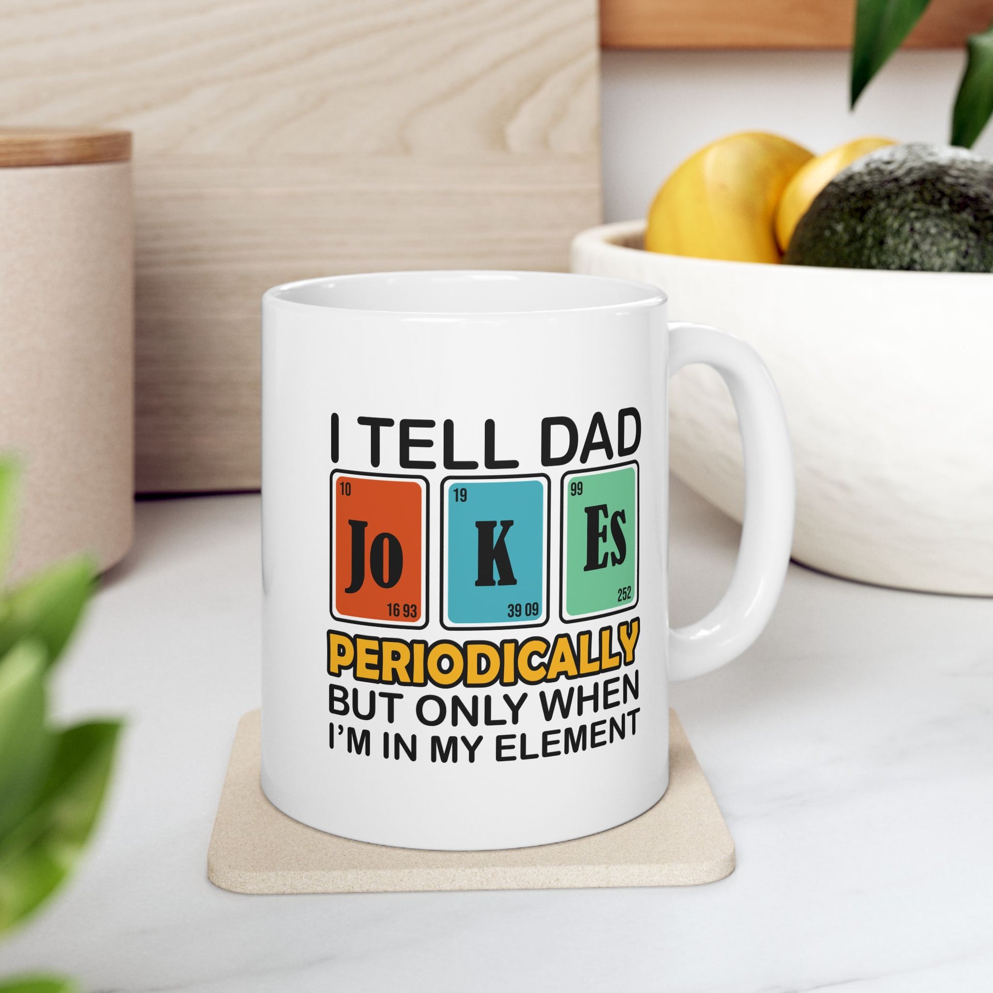 This ceramic mug perfect for the typical dad that yes, tells "those jokes" and is all so proud of it. It's the perfect dad item for him to show off just the dad he is while drinking his coffee, tea, hot coco or any drink. Perfect for those dads celebrating Father's Day or Birthdays.