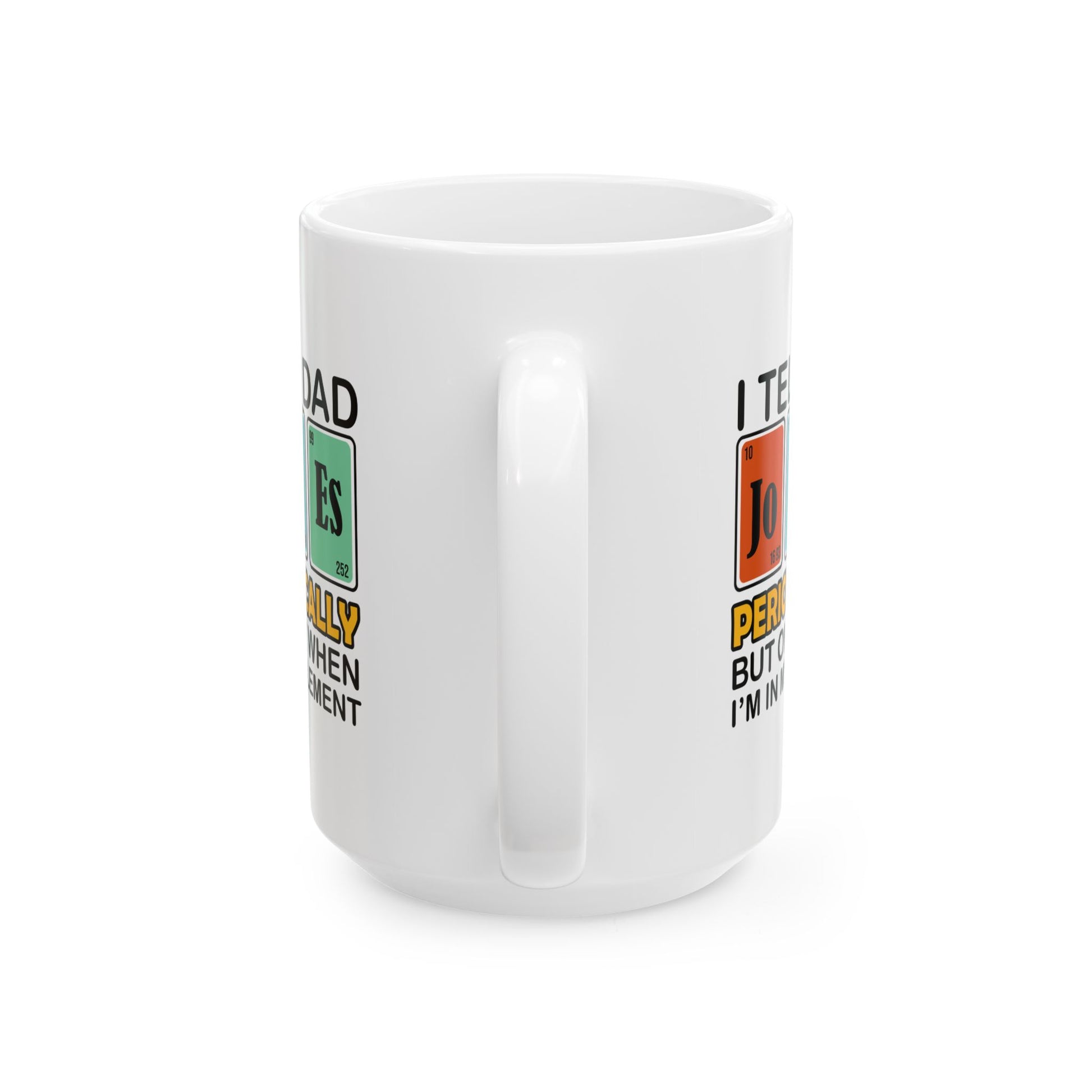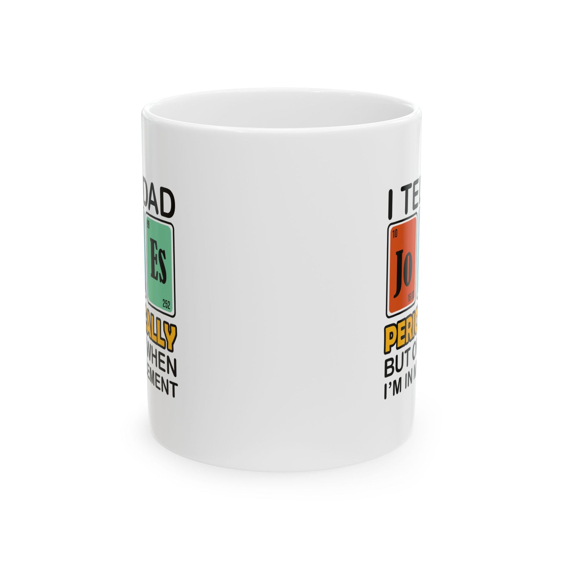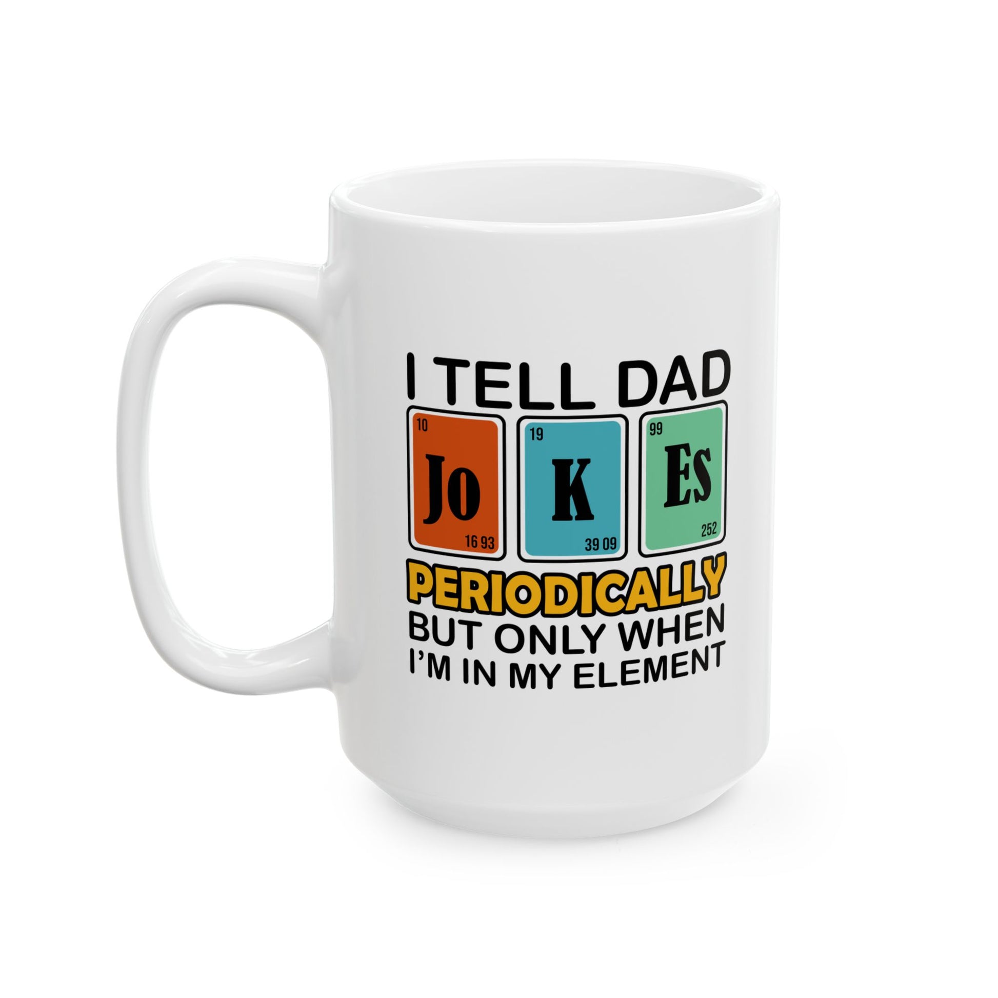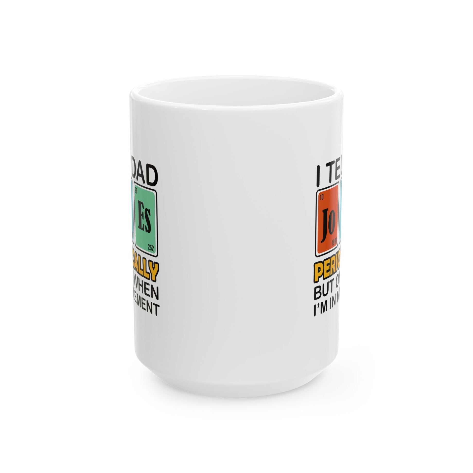 This ceramic mug perfect for the typical dad that yes, tells "those jokes" and is all so proud of it. It's the perfect dad item for him to show off just the dad he is while drinking his coffee, tea, hot coco or any drink. Perfect for those dads celebrating Father's Day or Birthdays.