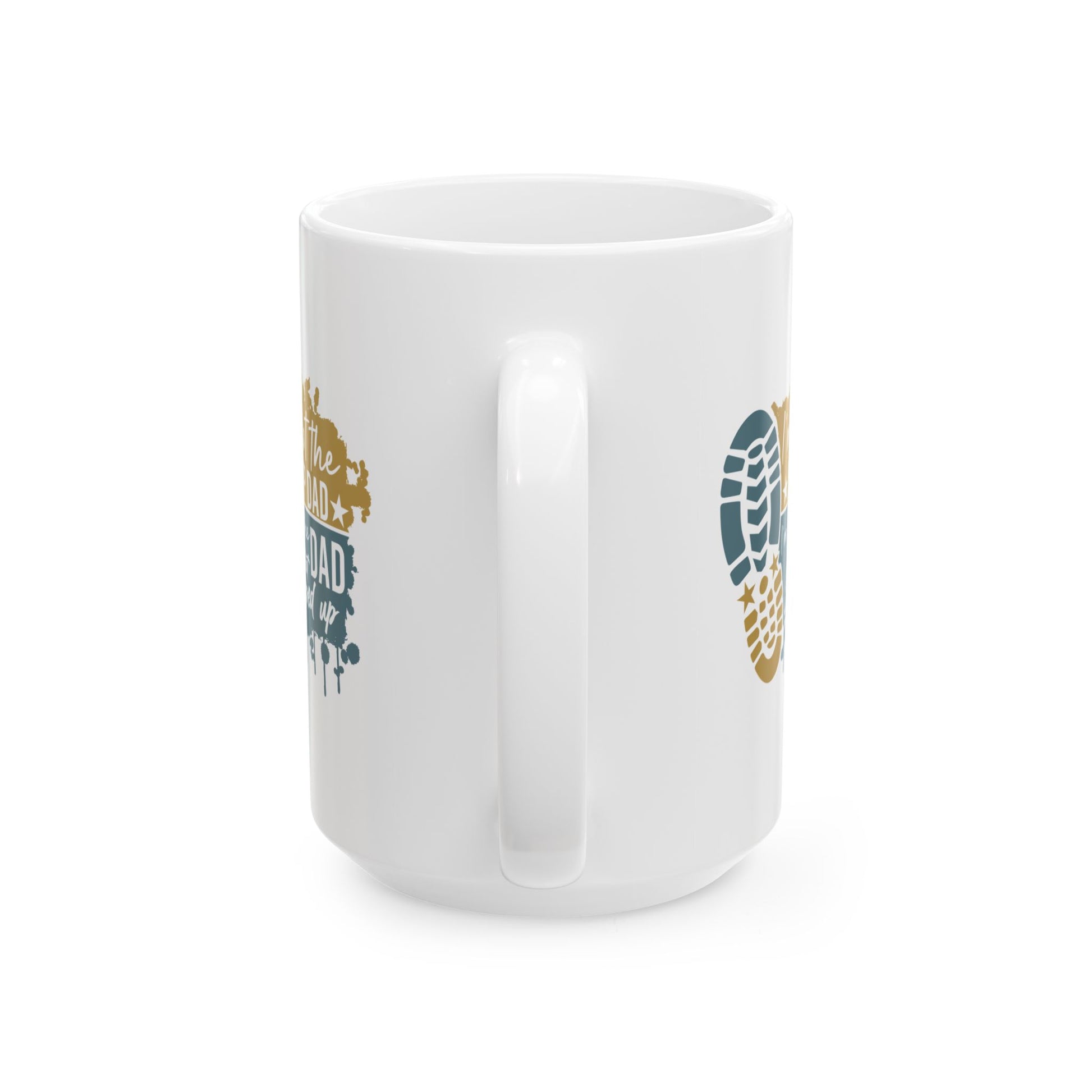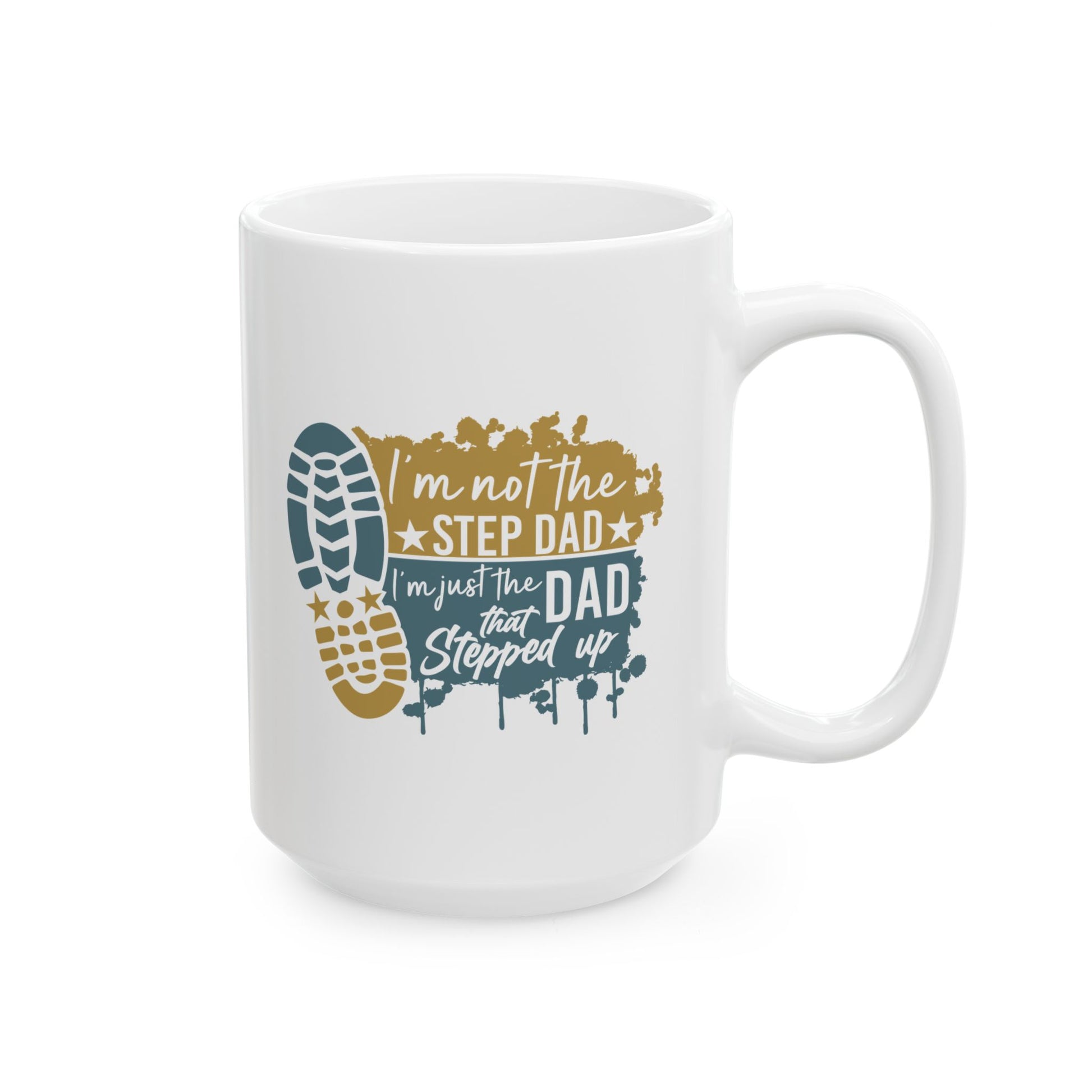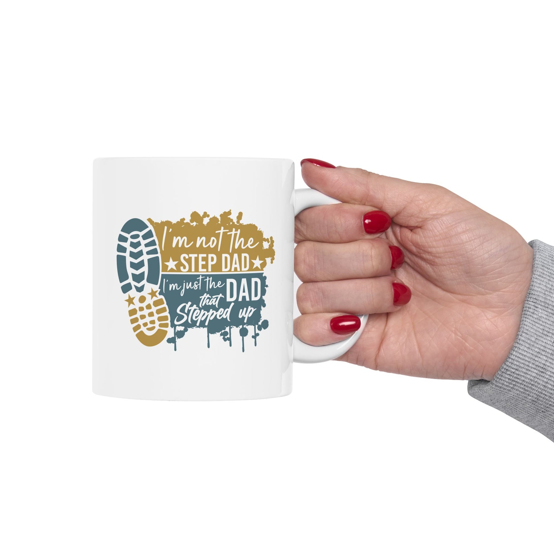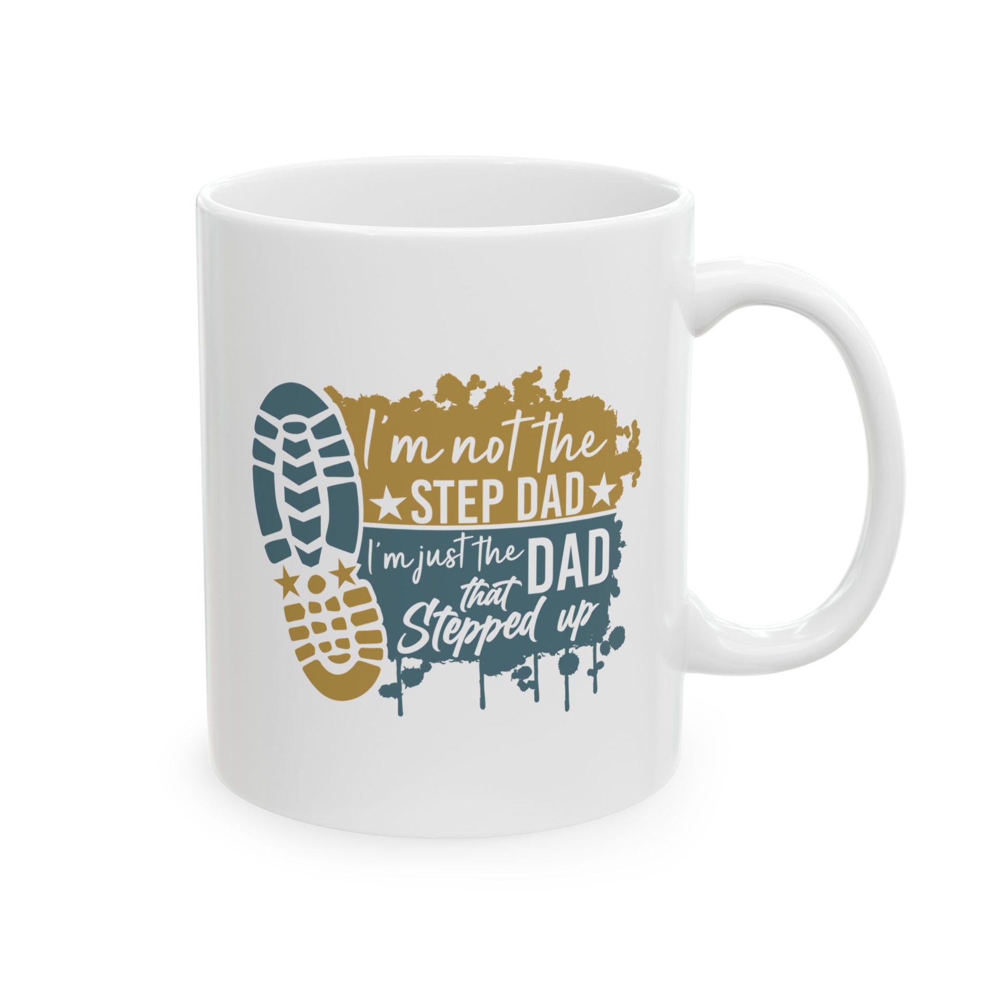 This ceramic mug featuring 'I am not the step-dad, I am just the dad that stepped up' in a blue and yellow shade. This mug is a great gift idea for the man who stepped up to be a father figure. It's perfect for carrying around coffee, tea, or any beverage, at home or the office that can allow him show how proud of the dad he is, or how proud you are. Perfect for Father's Day, birthdays, or just to show appreciation for dad. Suitable for adults.