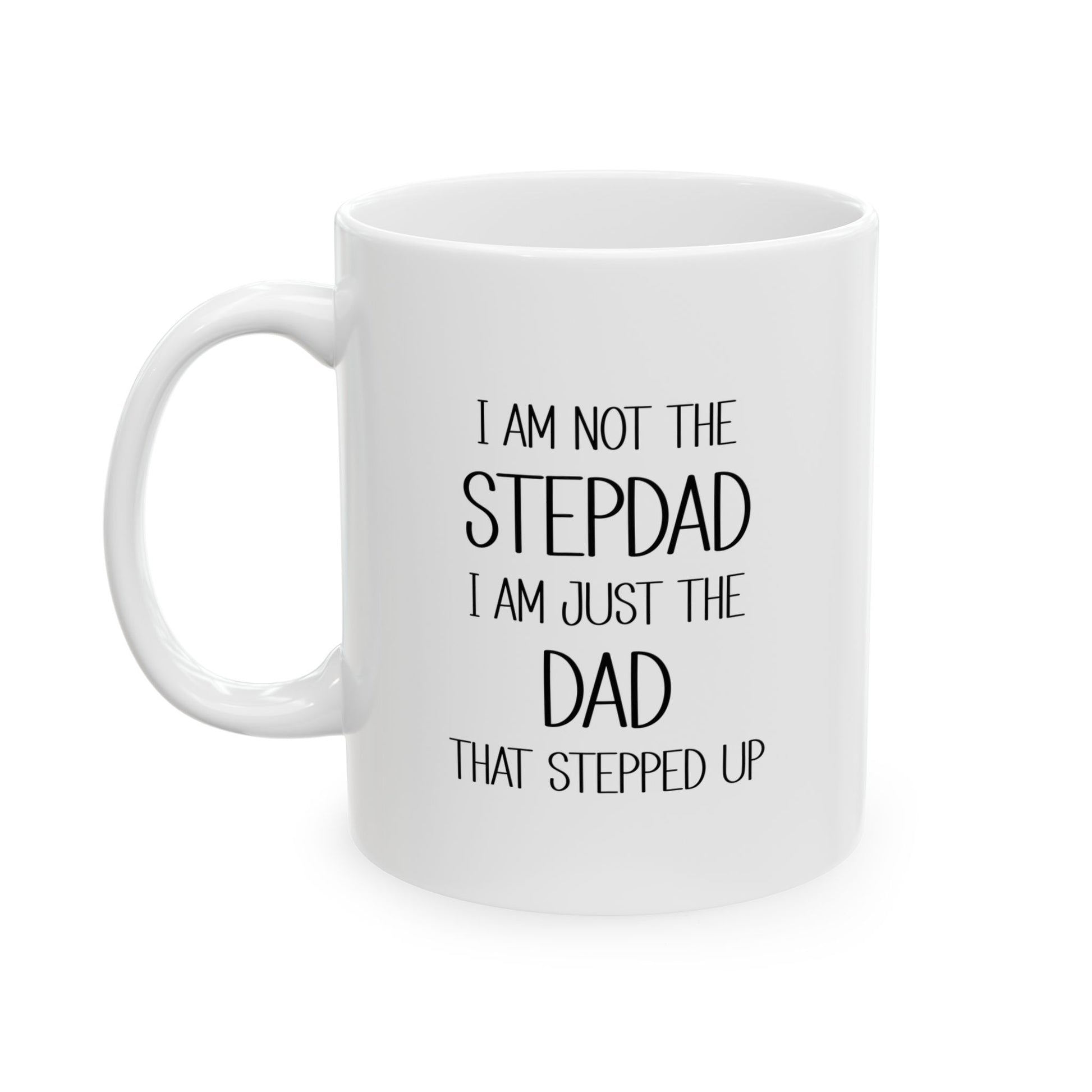 This ceramic mug featuring 'I am not the step-dad, I am just the dad that stepped up'. This mug is a great gift idea for the man who stepped up to be a father figure. It's perfect for carrying around coffee, tea, or any beverage, at home or the office that can allow him show how proud of the dad he is, or how proud you are. Perfect for Father's Day, birthdays, or just to show appreciation for dad. Suitable for adults.