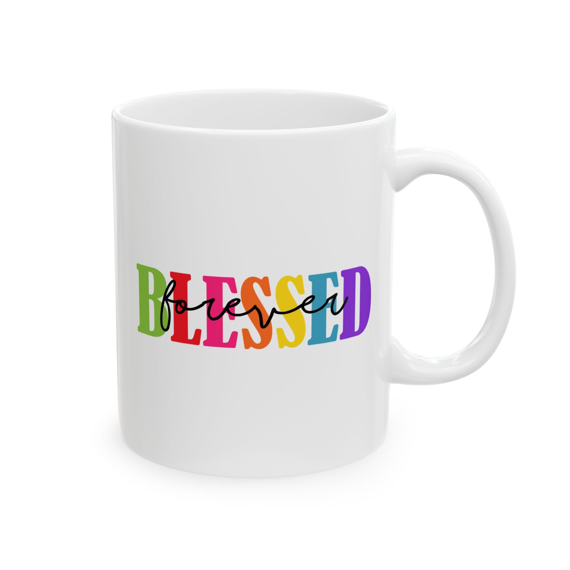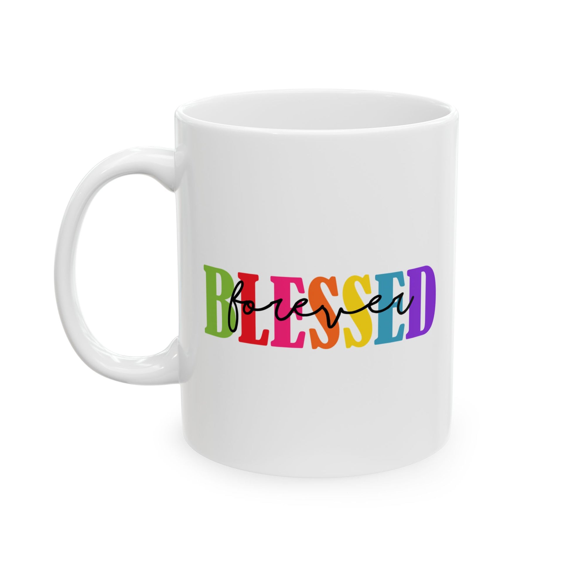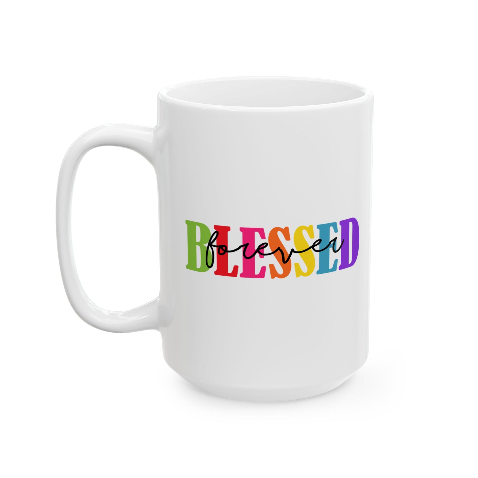 This ceramic mug is perfect for faithful in your life needing that coffee, tea or basicaly any beverage. Everywhere the person goes, everyone will know that the person (or yourself) is "Blessed Forever".