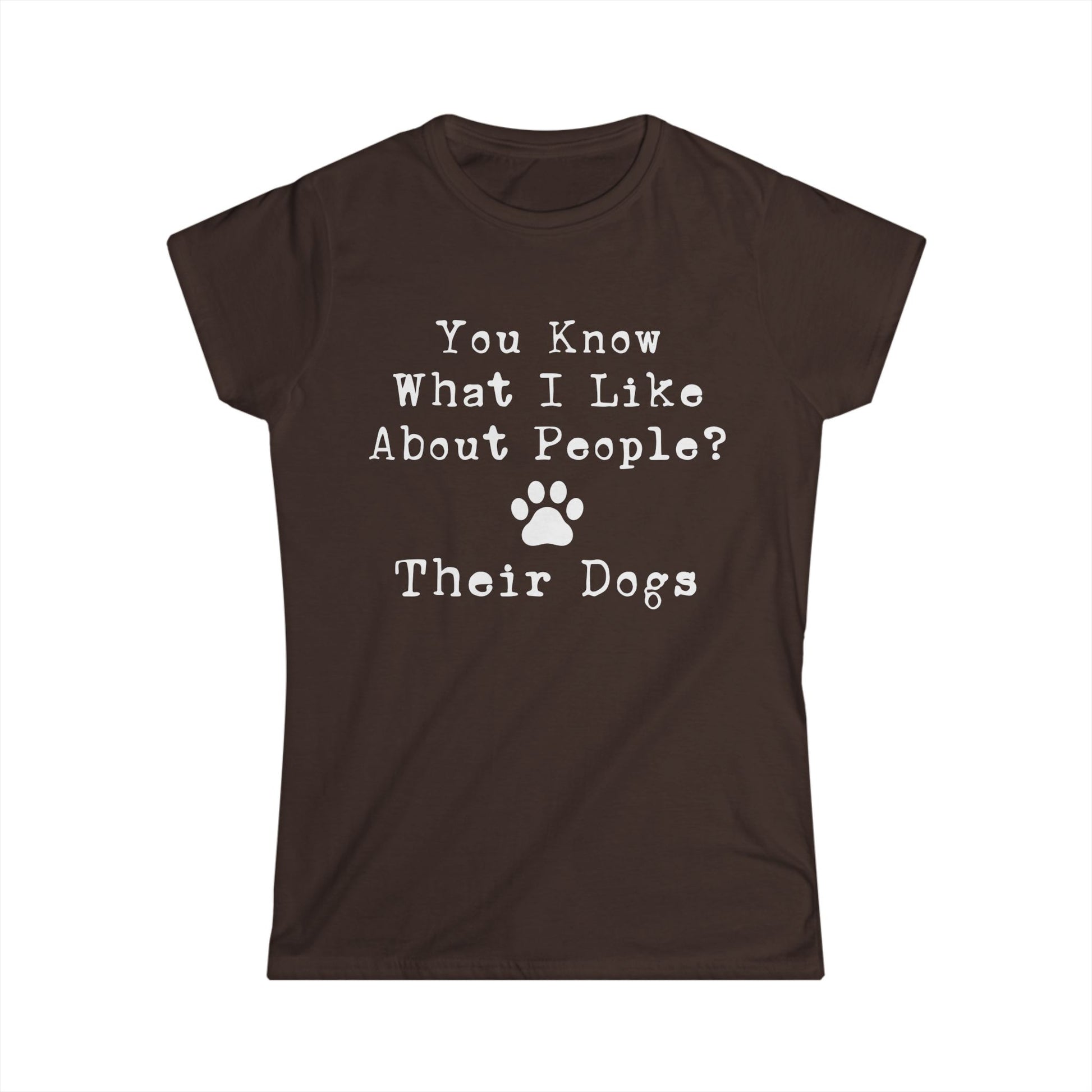 An adorable t-shirt for dog lovers, featuring a fun saying "You know what I like about people? Thier Dogs" in white font. Ideal for those who love spending quality time with their dogs.