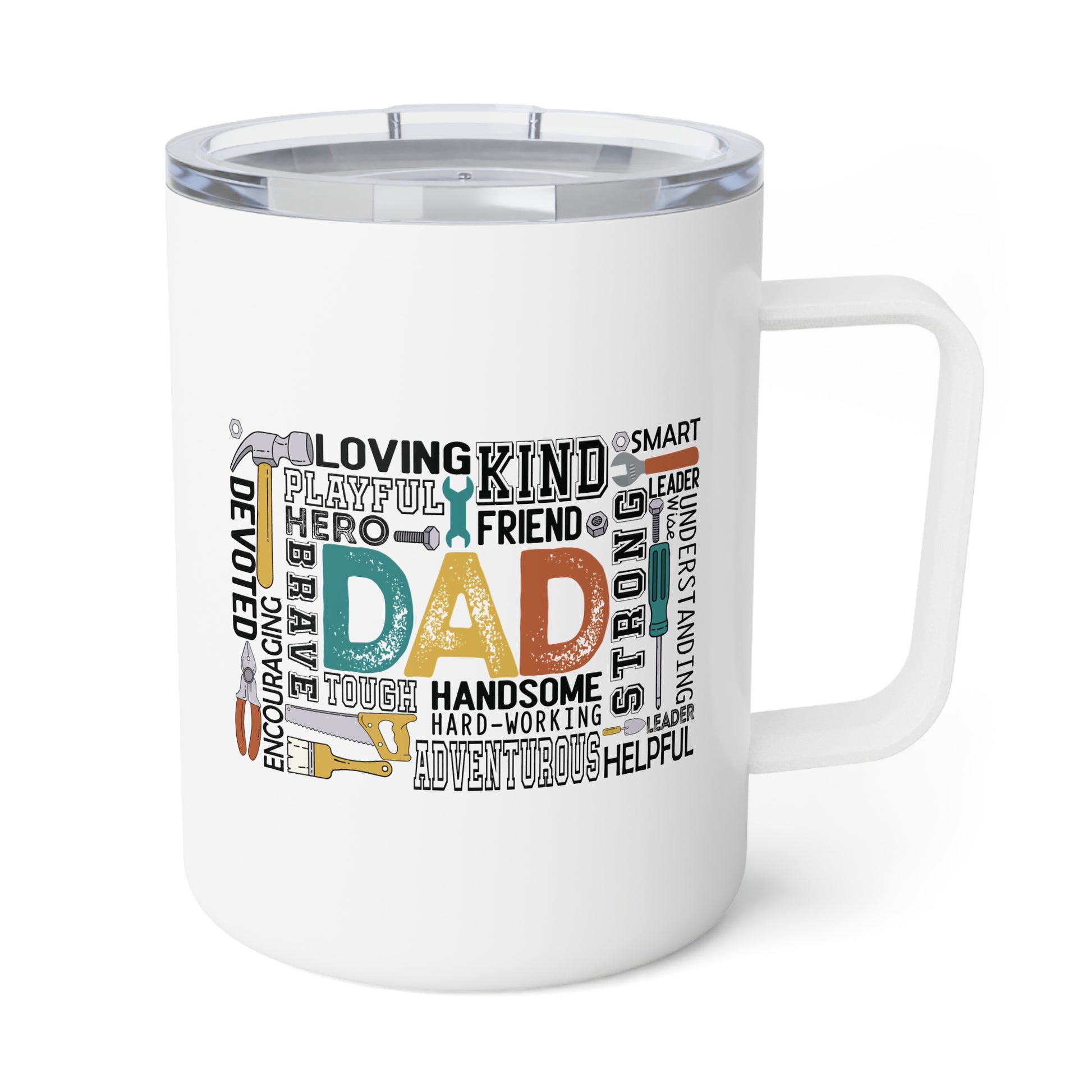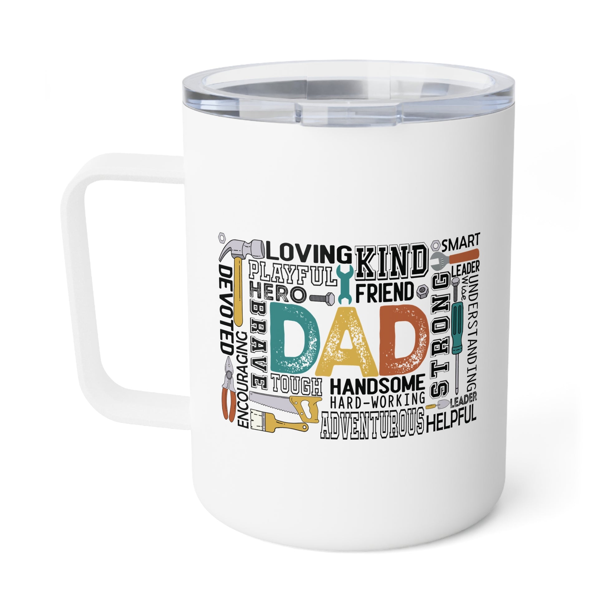 A great insulated mug for for the handyman dad in your life. The mug It's the perfect dad item with statement of dad with all sort of handyman items for all those hands on fixing dads. Everywhere he goes, everyone will know that is a handy with his hands and a proud dad to his kid(s). Perfect for those outdoor dads celebrating Father's Day or Birthdays.