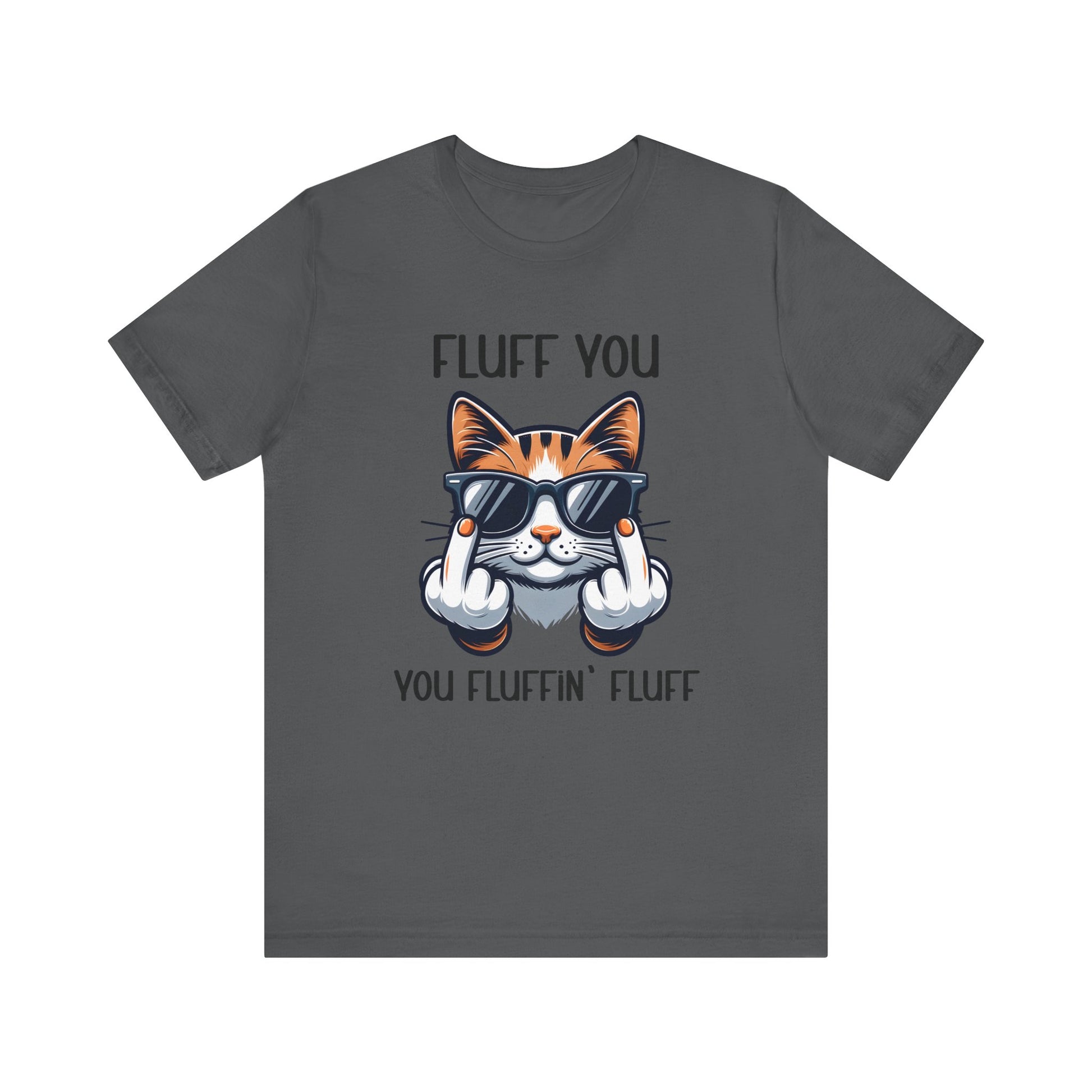 This funny and sarcastic T-shirt that states 'Fluff You - you fluffin fluff' with a cat flipping his bird finger. It is a just a simple cat expressing your mood by insulting all those around you. (In black font.) Made with 100% Airlume combed ring-spun cotton, it's lightweight and breathable, ideal for any season. Whether you're out running errands or meeting friends, this versatile tee offers both comfort and style. A great gift for adults who appreciate quality and relaxed fits, it's perfect for birthdays, holidays, or everyday wear.