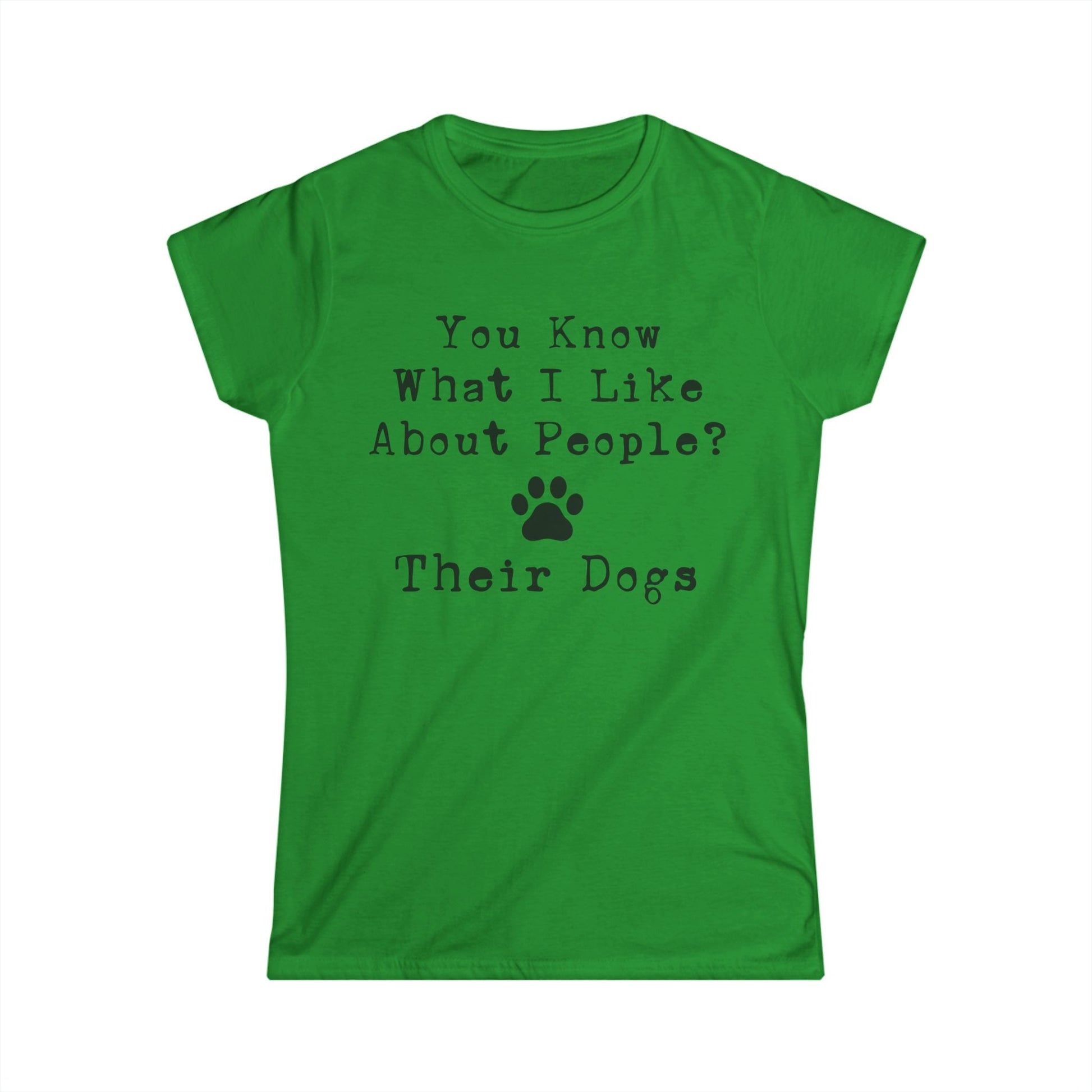 An adorable t-shirt for dog lovers, featuring a fun saying "You know what I like about people? Thier Dogs" in black font. Ideal for those who love spending quality time with their dogs.
