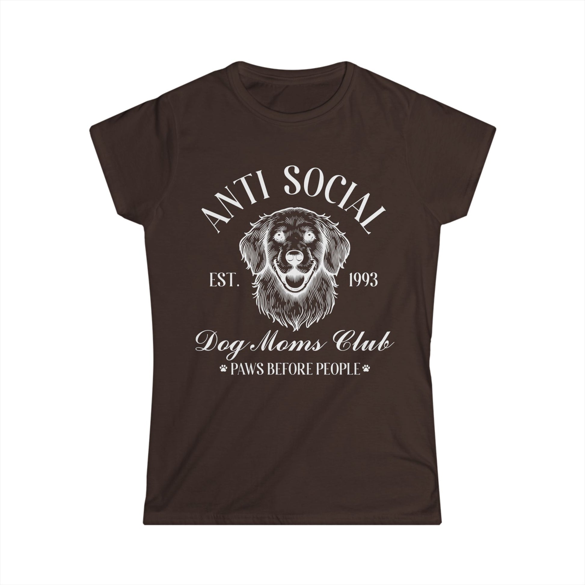 This comfortable unisex style tee features a cute outlined dog with the statement of "Anti-Social Dog Mom's Club, Paws before People" in white font is perfect for all dog moms. Wear it while walking your dog, shopping, or any casual event. Ideal for dog lovers and perfect for Mother's Day, birthdays, or any occasion to celebrate the bond with your furry friend.