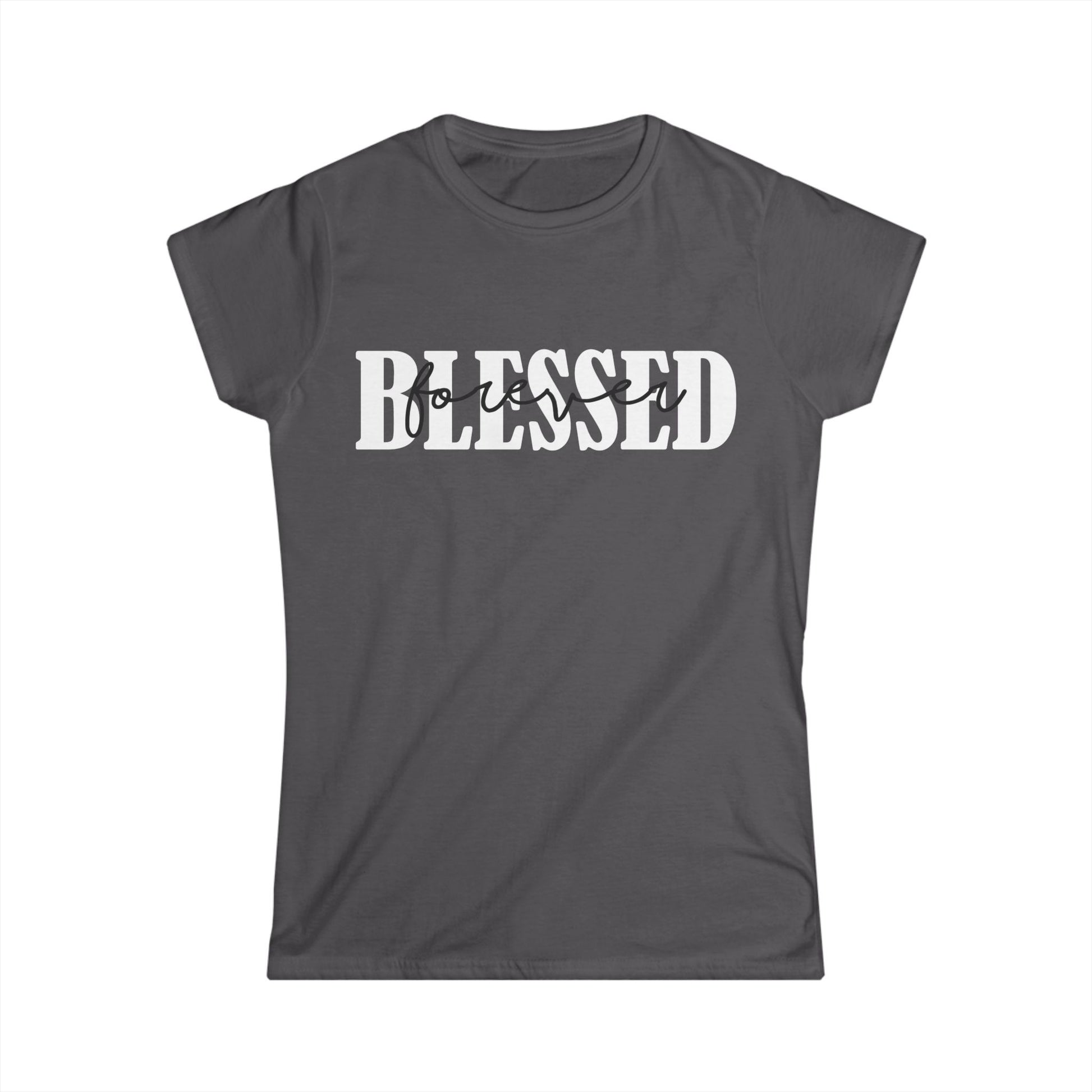 Faith-based t-shirt with the simple statement of 'Blessed Forever' in black & white coloring font. This unisex t-shirt offers a blend of comfort and style, perfect for casual outings, family gatherings, or relaxed days at home. The uplifting 'BLESSED' design captures a positive vibe, making it a great choice for those who cherish uplifting messages in their attire. Ideal for gifting during celebrations like birthdays or holidays, resonating with anyone who values comfort and a cheerful outlook.