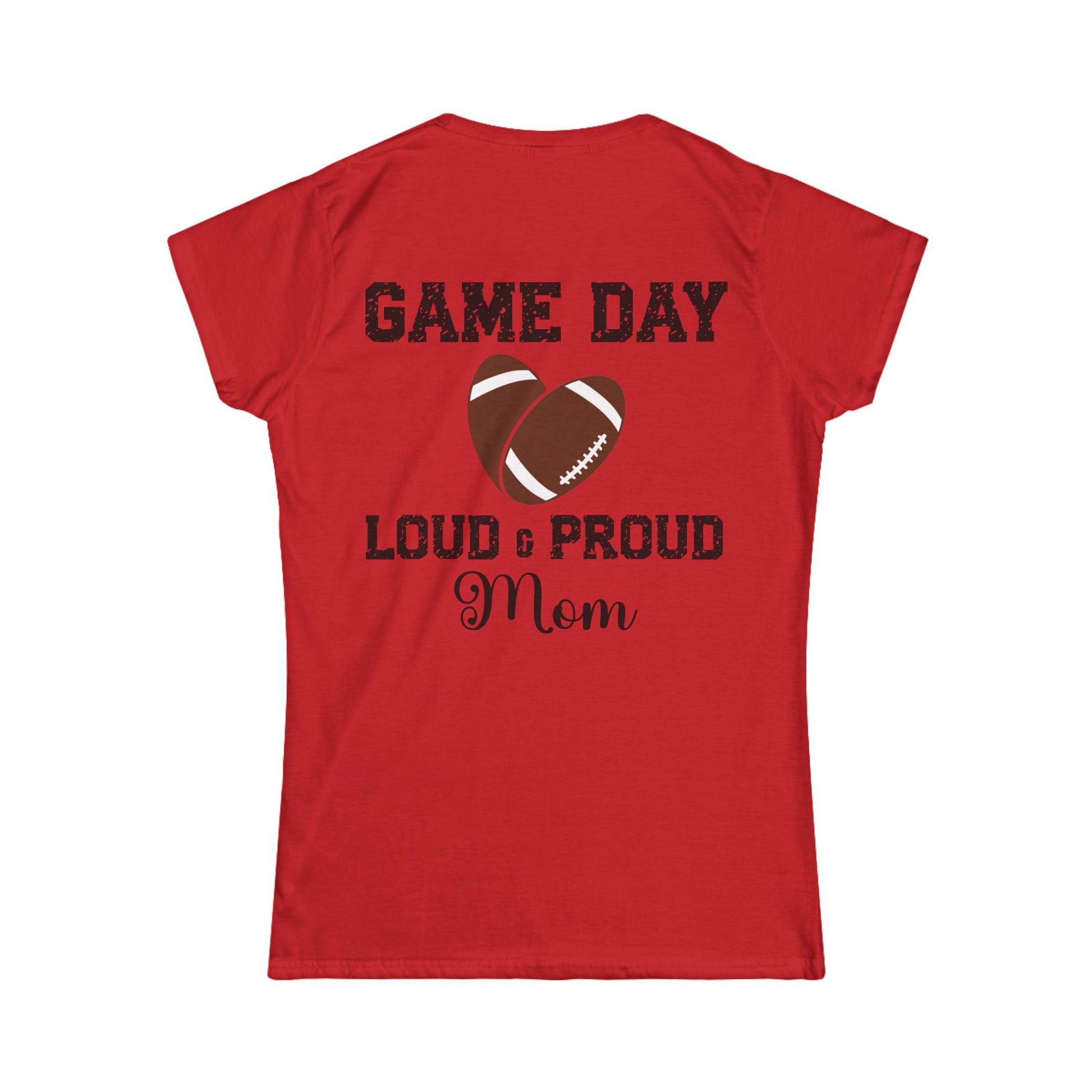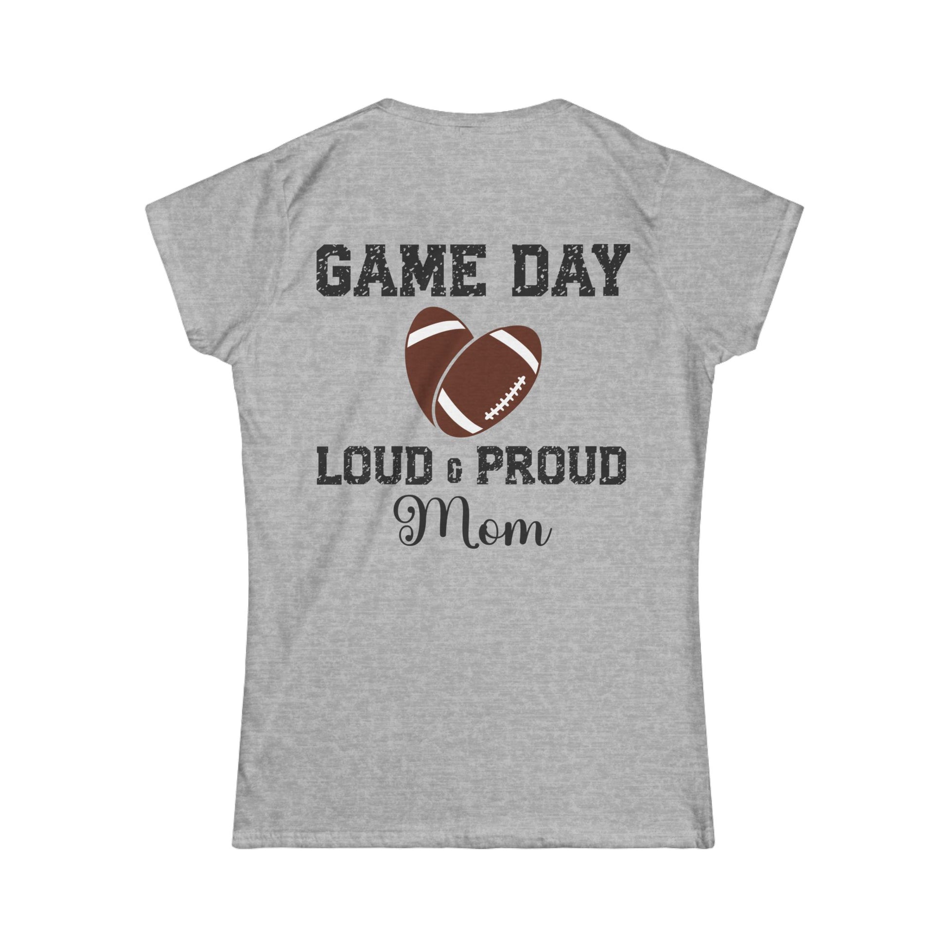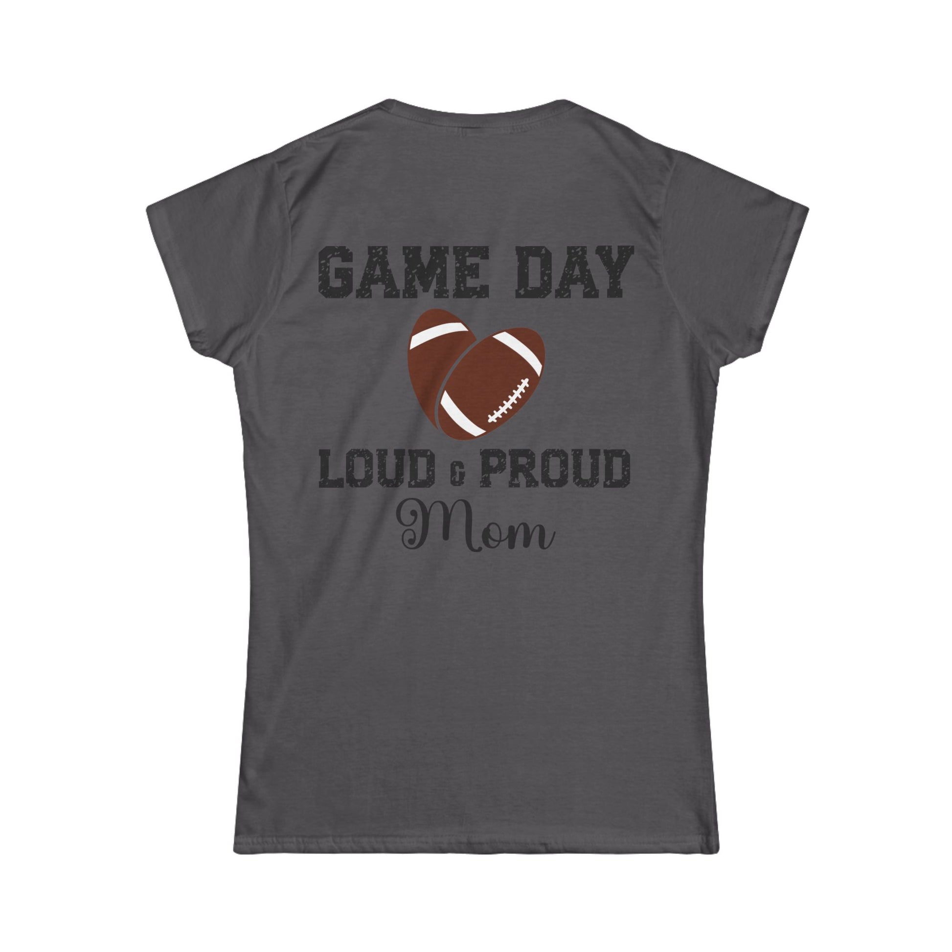 Show off your proud mom vibes with this 'Game Day, Loud & Proud, Mom' on the back of the tee. On the front corner is a football heart that states 'My heart is on that field'. Comfortable and soft perfect for football game days.