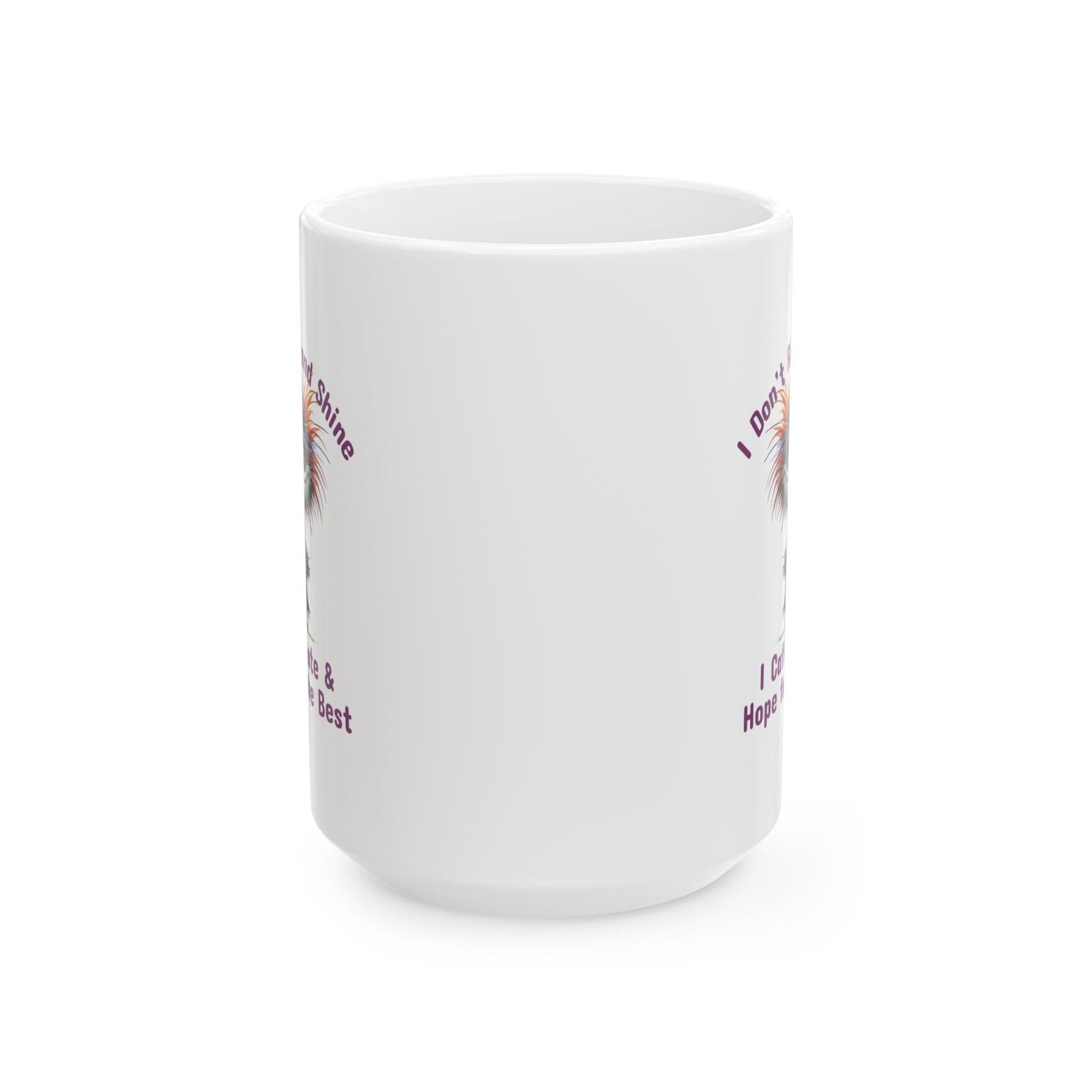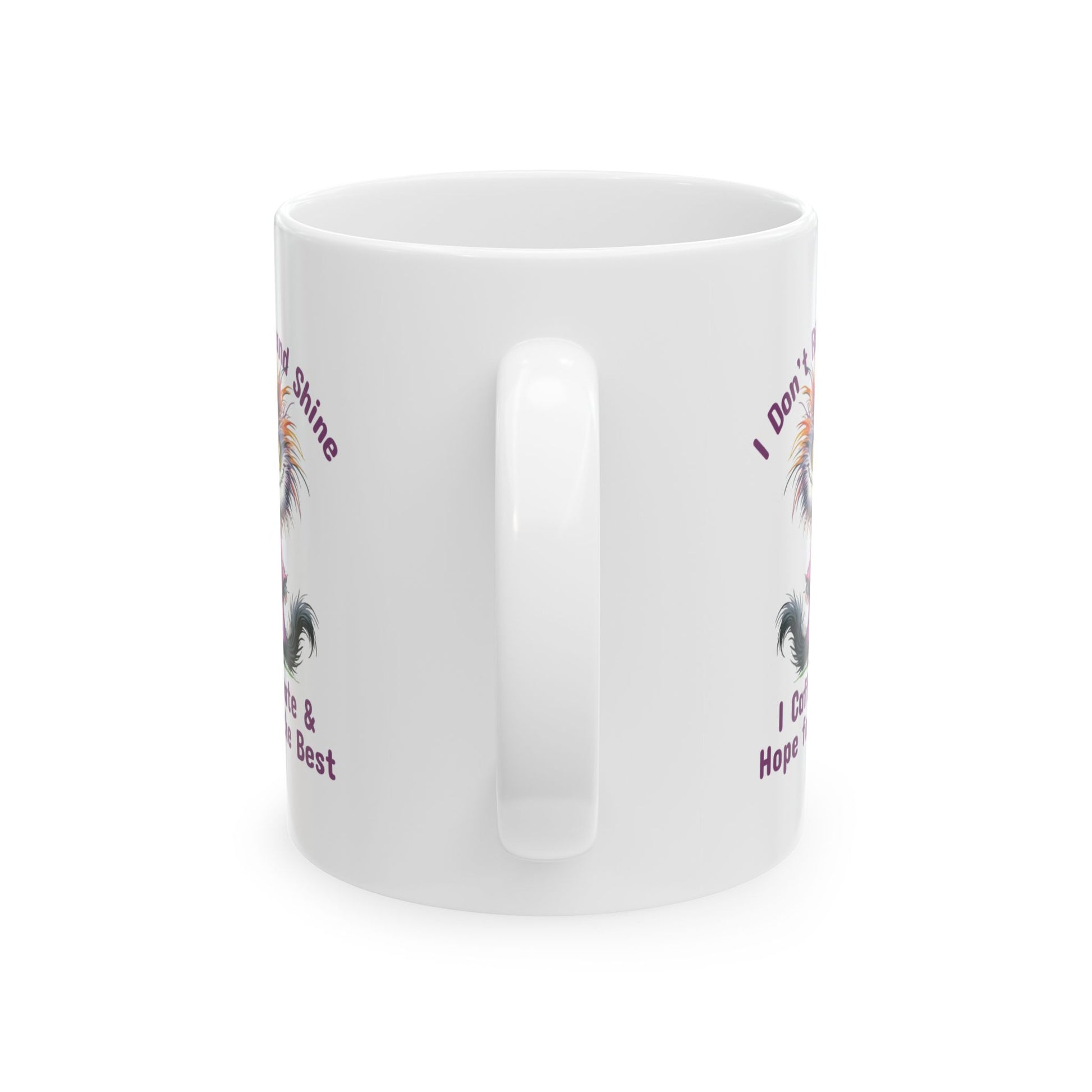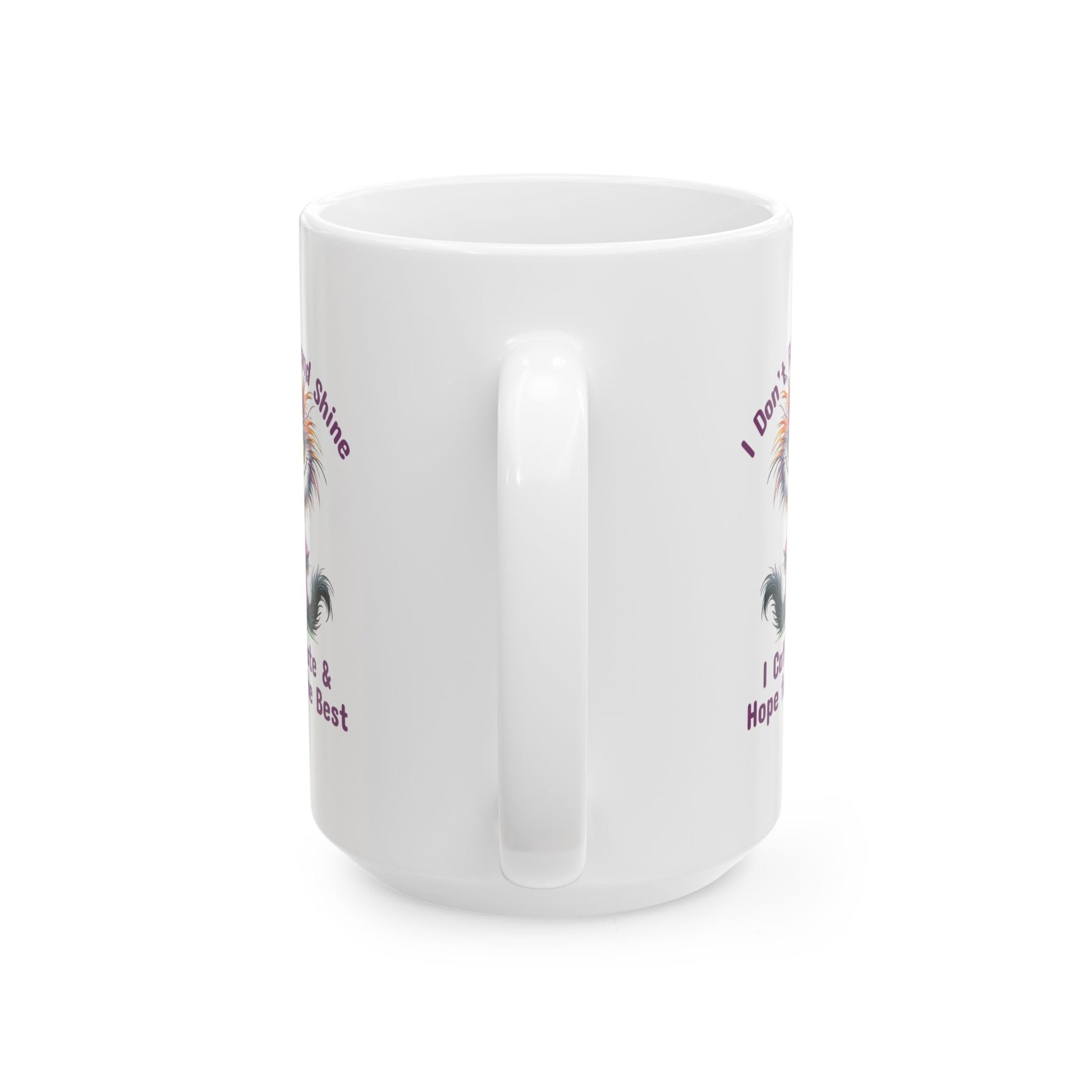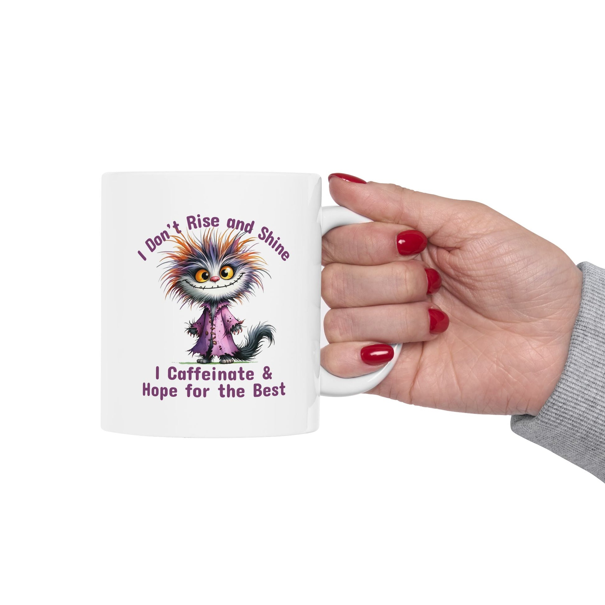 This ceramic mug is perfect for anyone with a sense of humor who relies on caffeine to kickstart their day. The quote "I don't Rise and Shine, I caffeinate and hope for the best" adds a humorous touch to your morning routine.