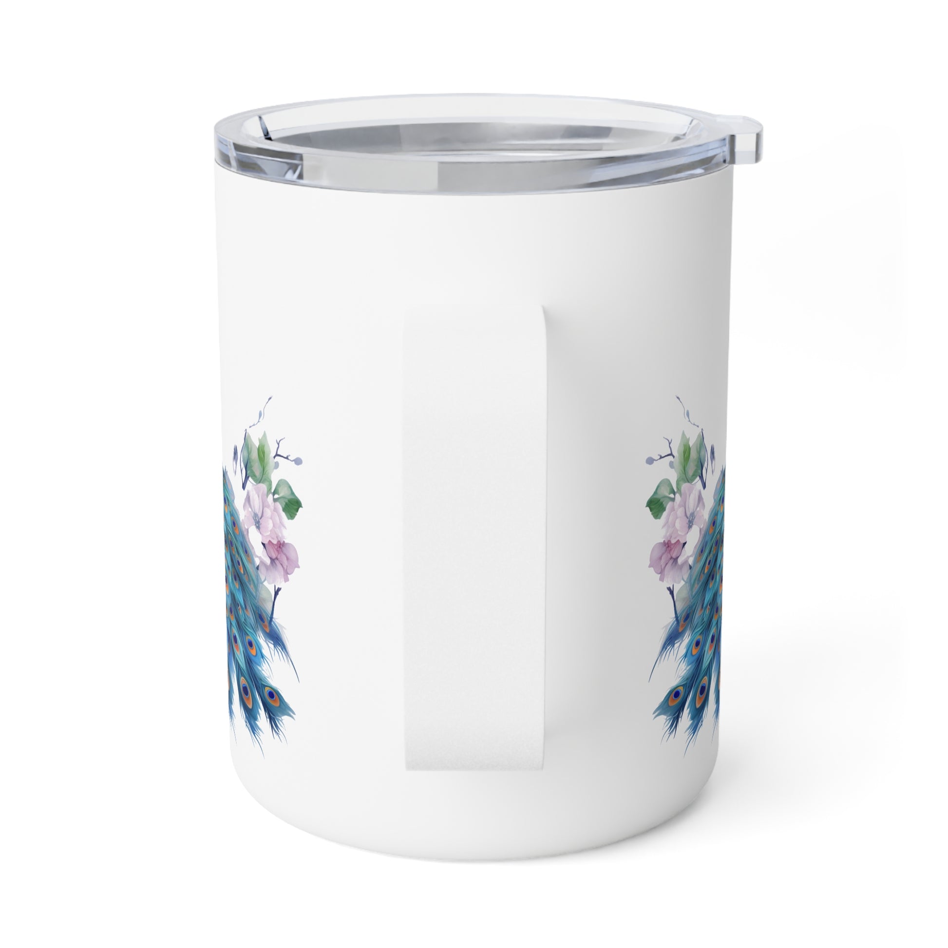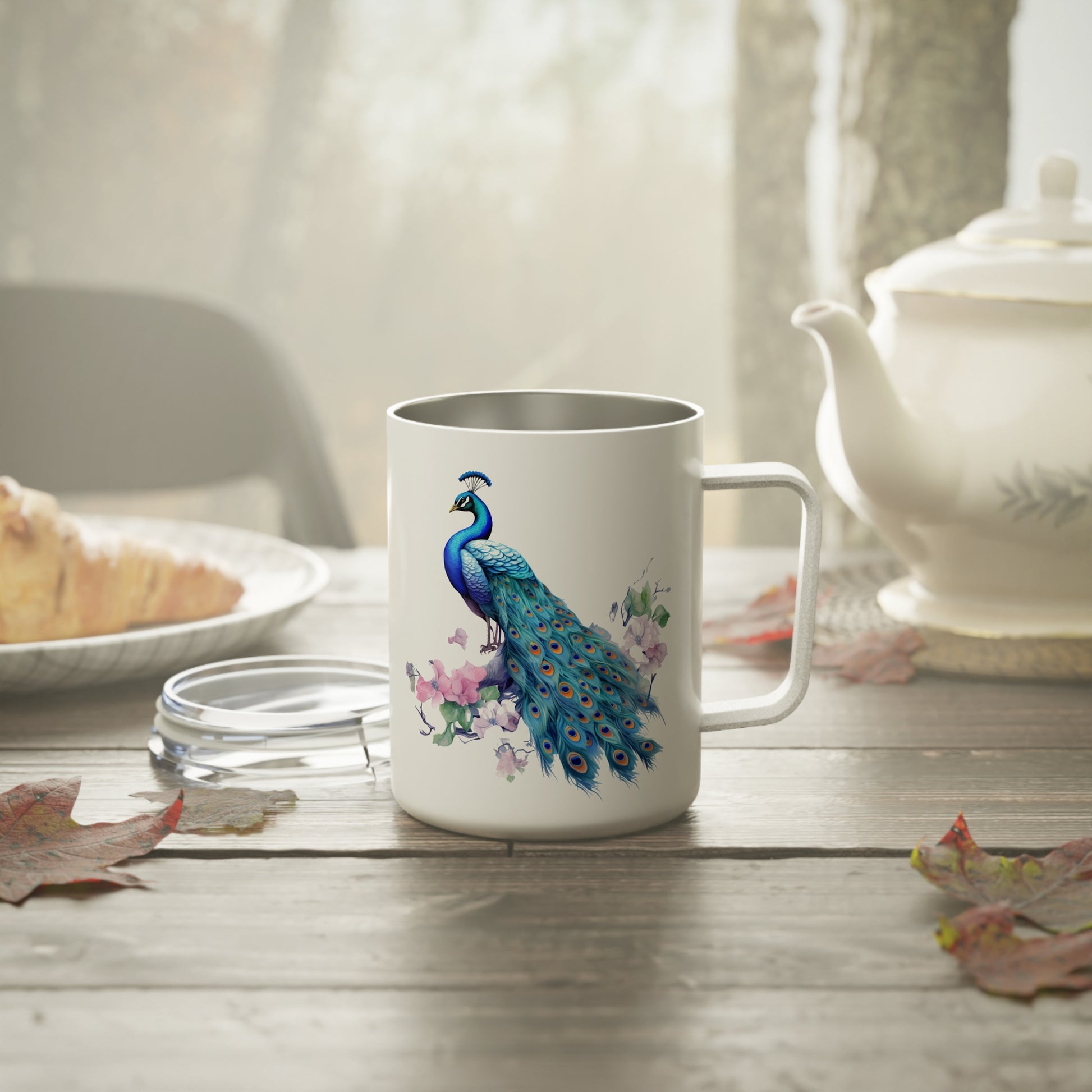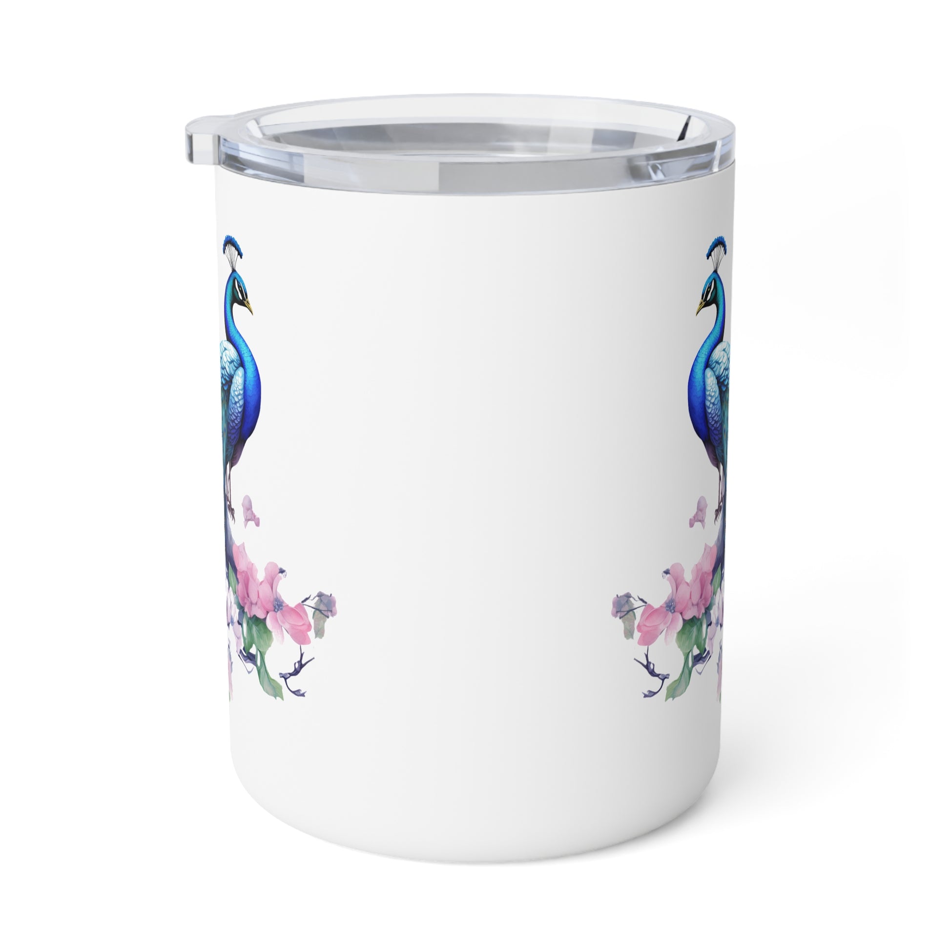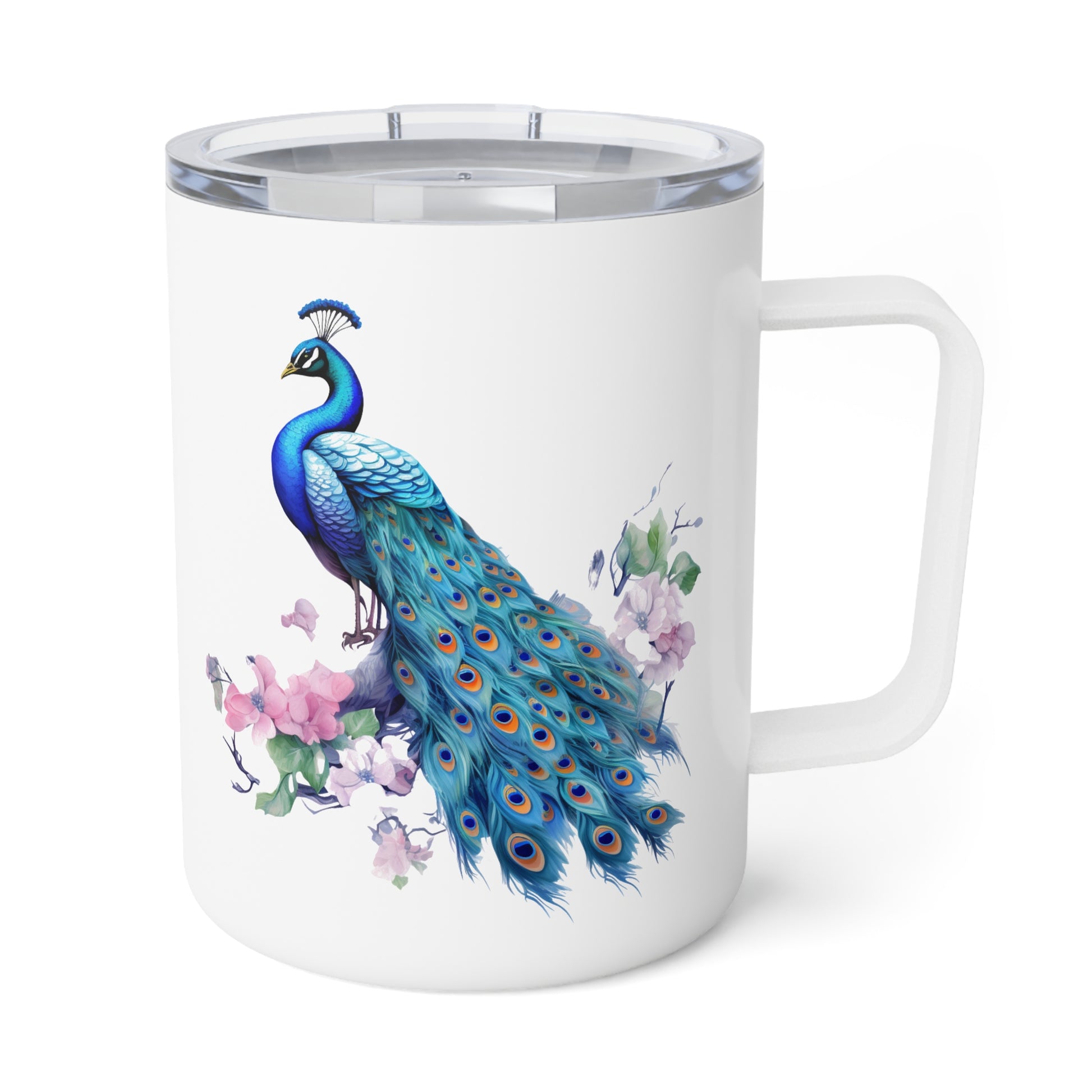 This insulated mug features a beautiful watercolor peacock. It's a great gift for any occasion.