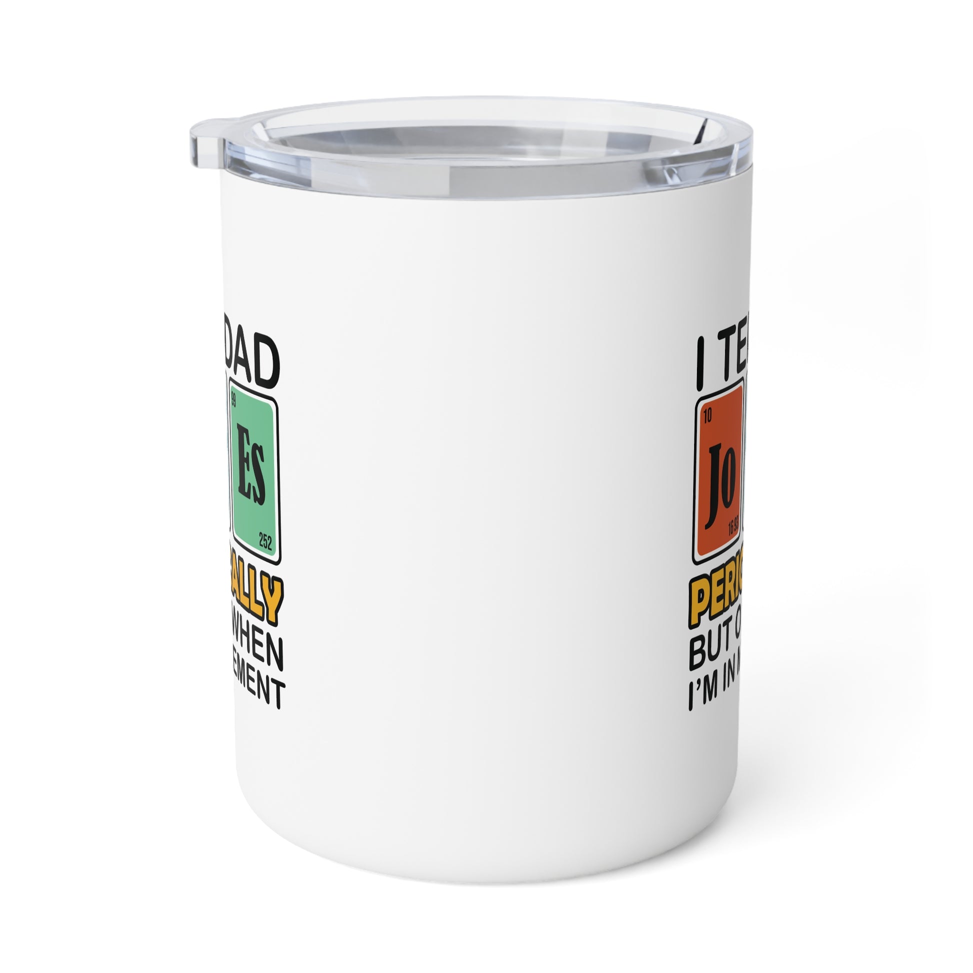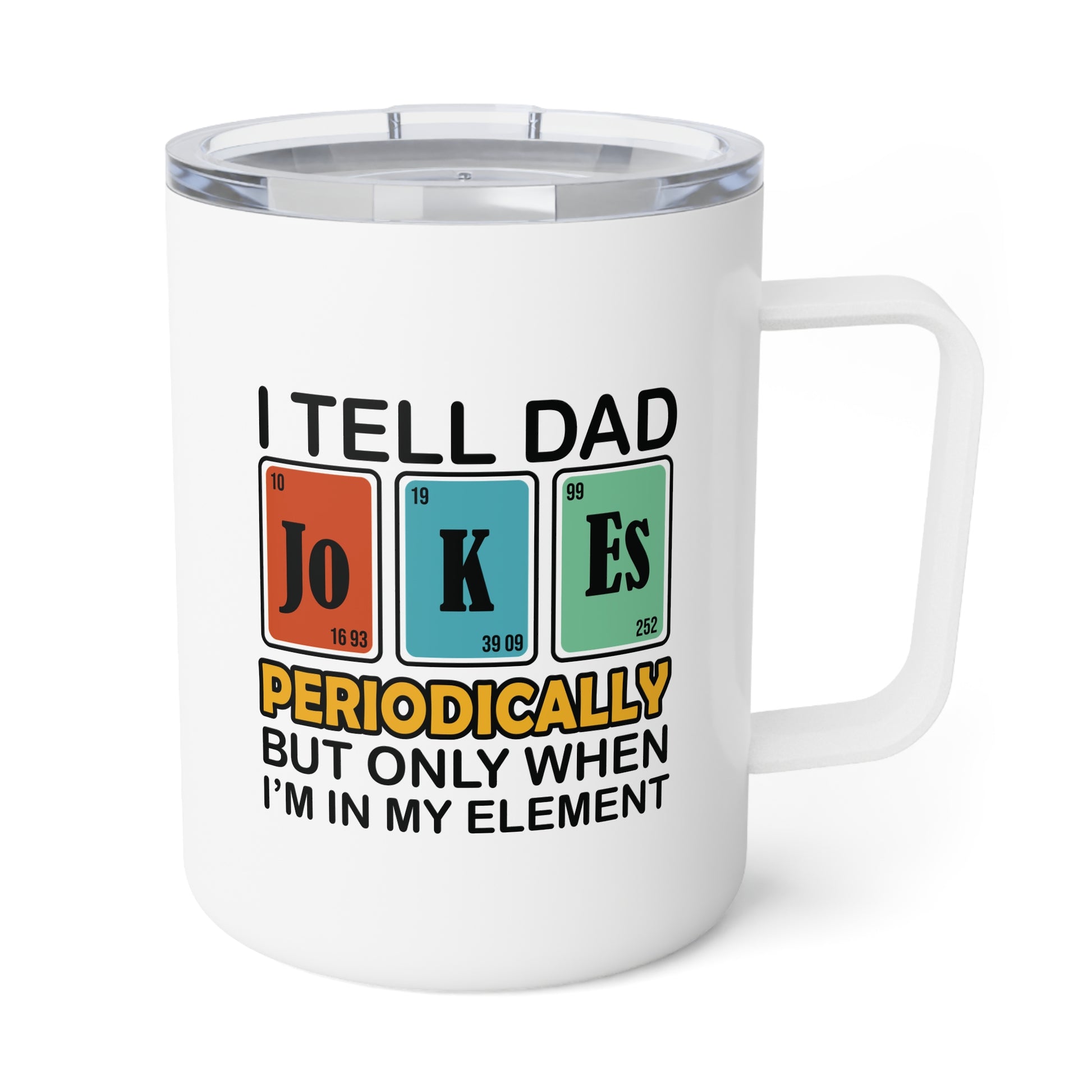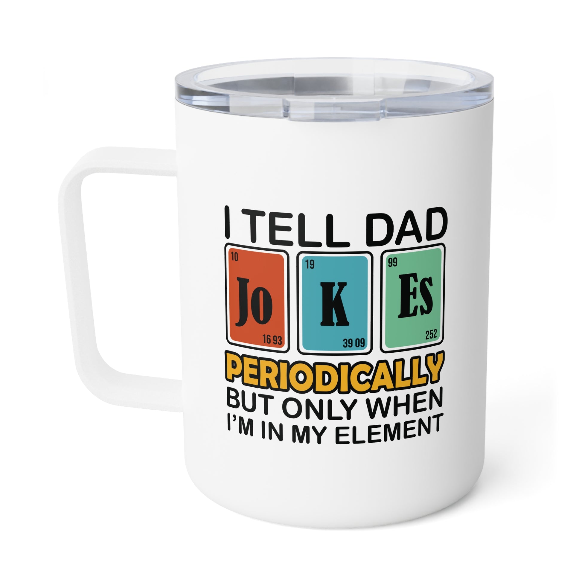 A great insulated mug for for the funny dad joker in your life. The mug is perfect for the typical dad that yes, tells "those jokes" and is all so proud of it. It's the perfect dad item for him to show off just the dad he is. Everywhere he goes, everyone will know that is one of "those joke telling" dads. Perfect for dads celebrating Father's Day or Birthdays.