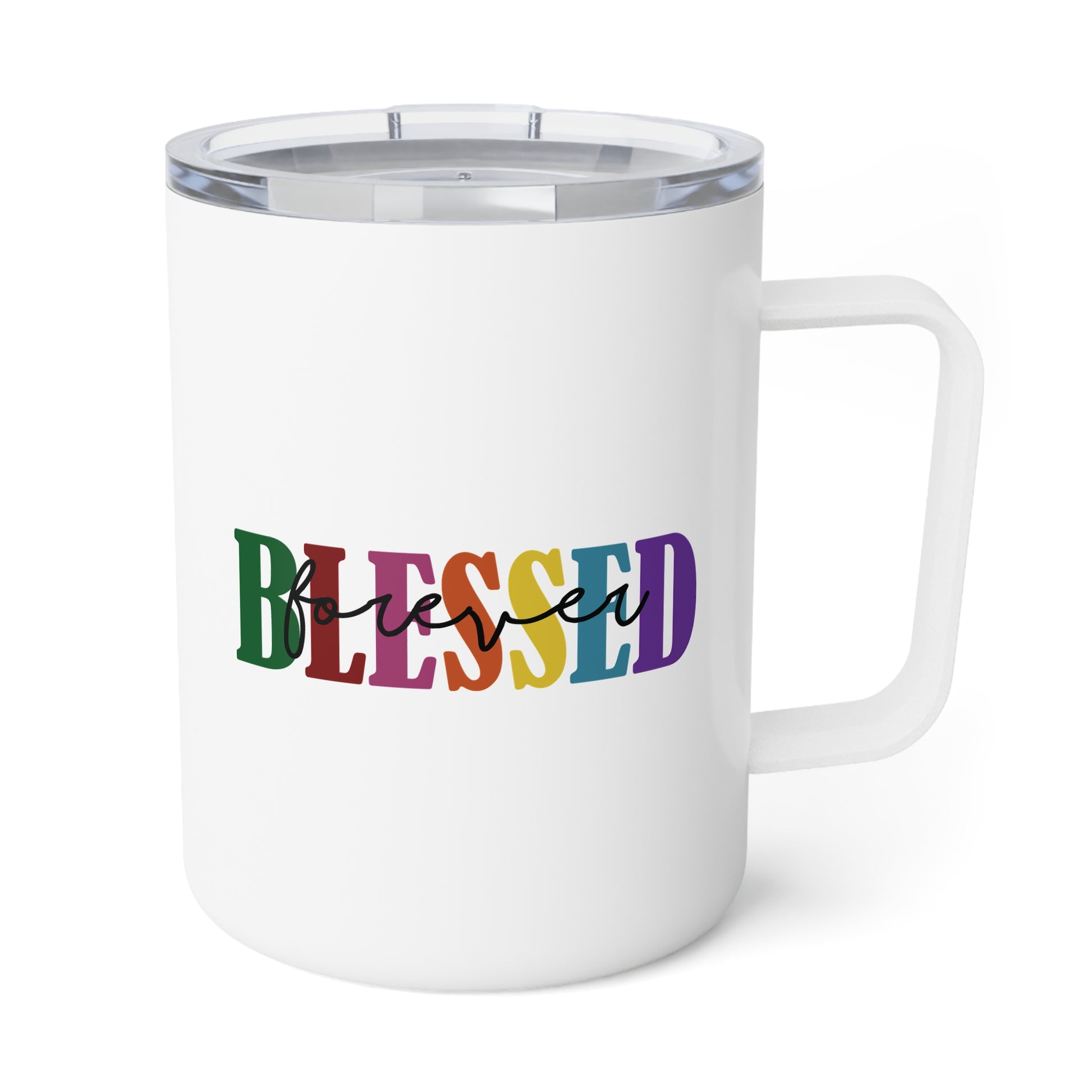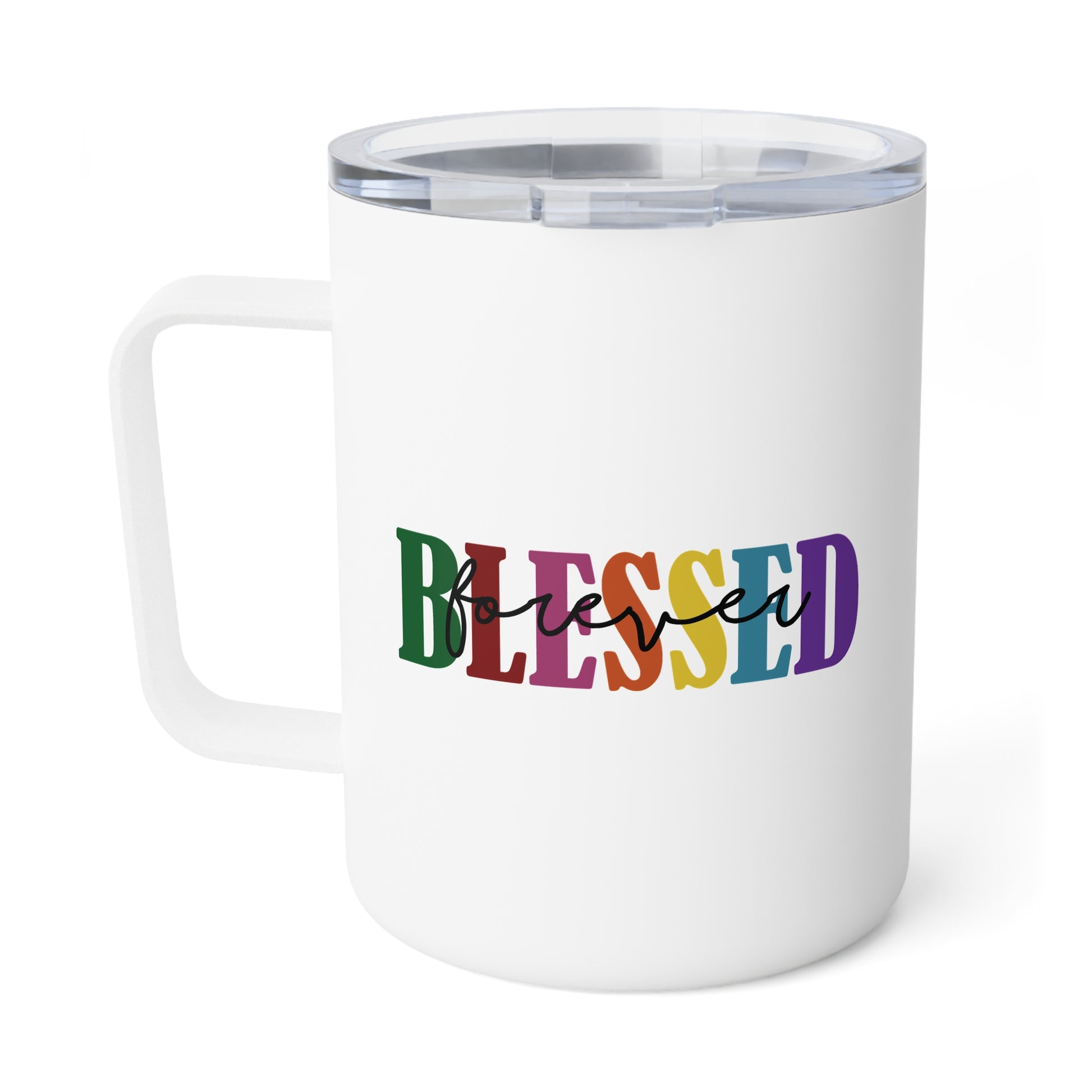 A great insulated mug for the faithful in your life. The mug stating Blessed Forever, the mug owner will show their faith everywhere they go. Perfect for those outdoor, traveling or just relaxing at home times.