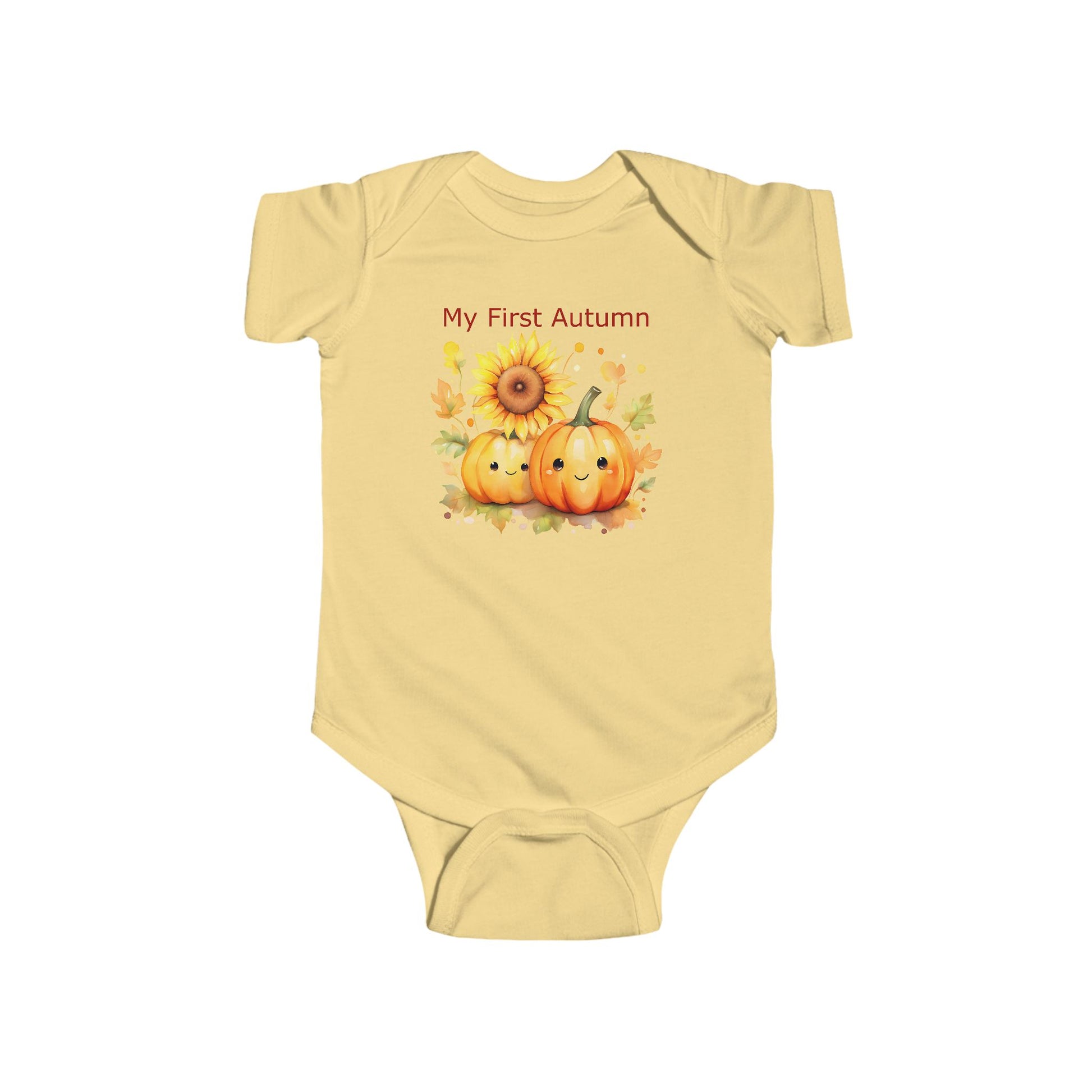 This onesie is perfect for Autumn / Halloween / Thanksgiving season. With the statement of My First Autumn with smiling pumpkins lets the baby wear it through out the autumn season and both holidays. This piece of clothing is ideal for young babies, giving off a sweet and playful vibe. It is relevant to parents of infants looking for a fun and festive outfit for the holiday season.