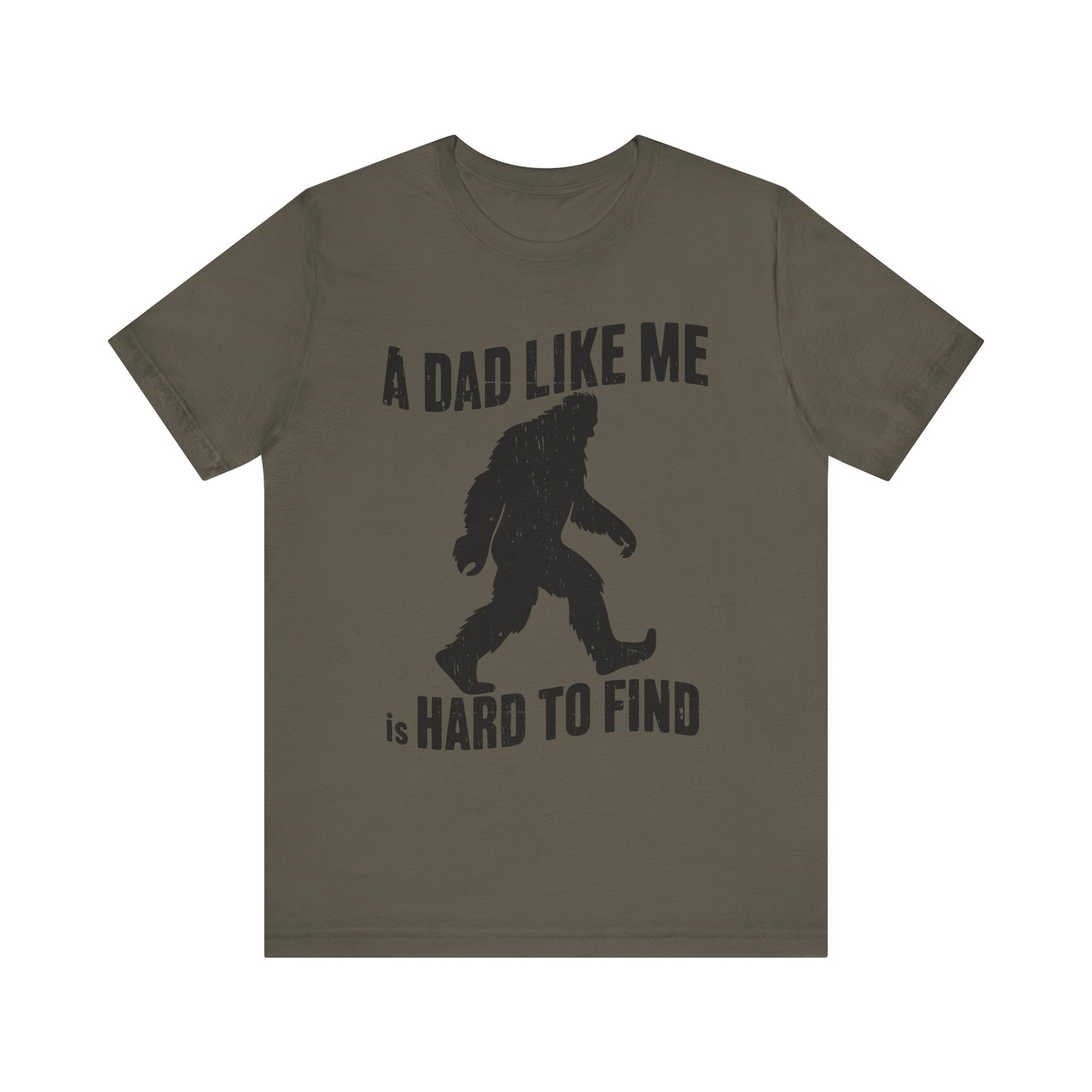 This comfortable tee shirt features an Bigfoot strolling the quote 'A Dad like me is hard to find' in a black font. It's the perfect dad style tee shirt for all those typical dad dads. Makes a great gift or something to buy yourself to show your dad status to the world. Perfect for Father's Day, birthdays, or just to show appreciation for dad. Suitable for adults.