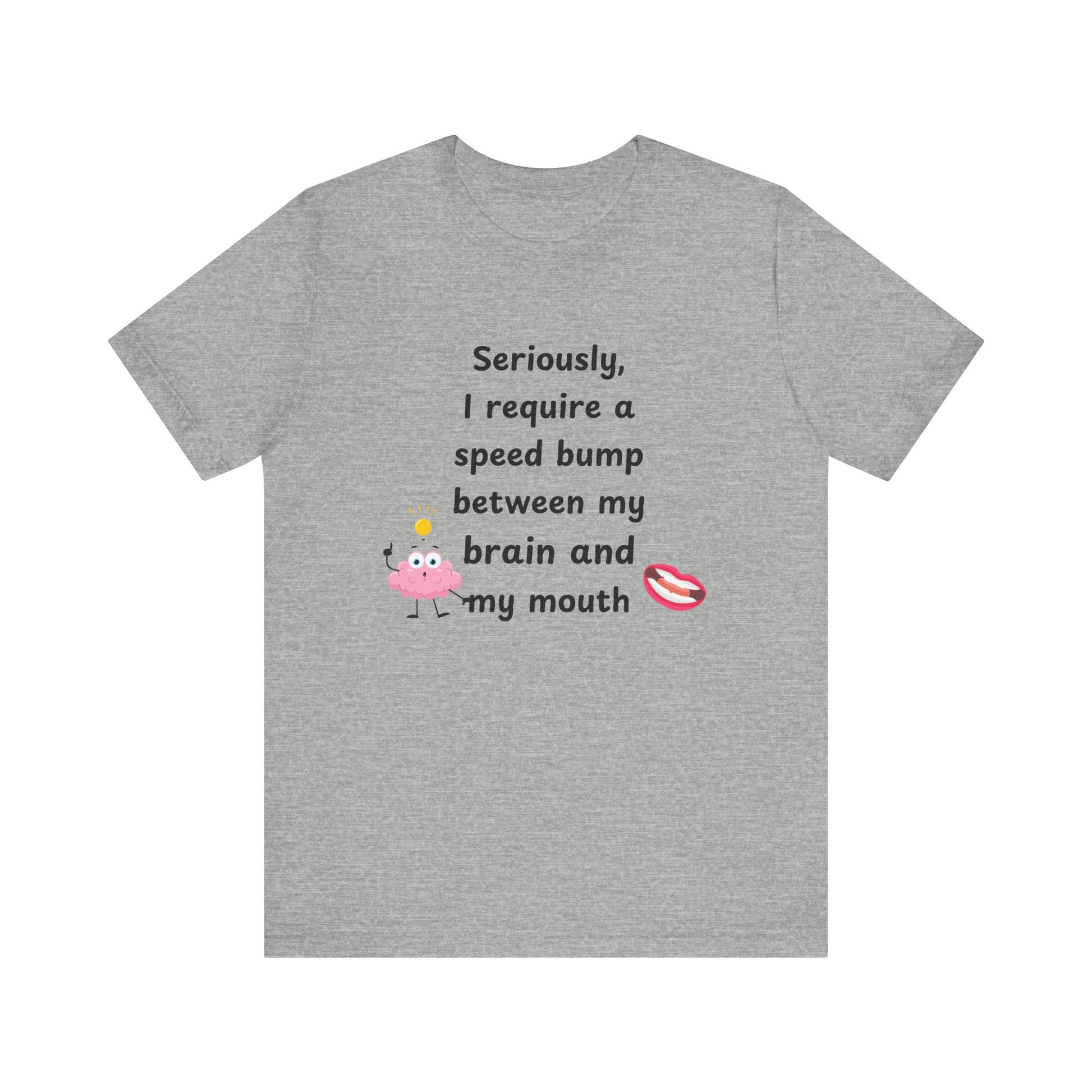 T-Shirt - Sarcastic Funny – "I Require a Speed Bump Between My Brain and My Mouth" (1a)