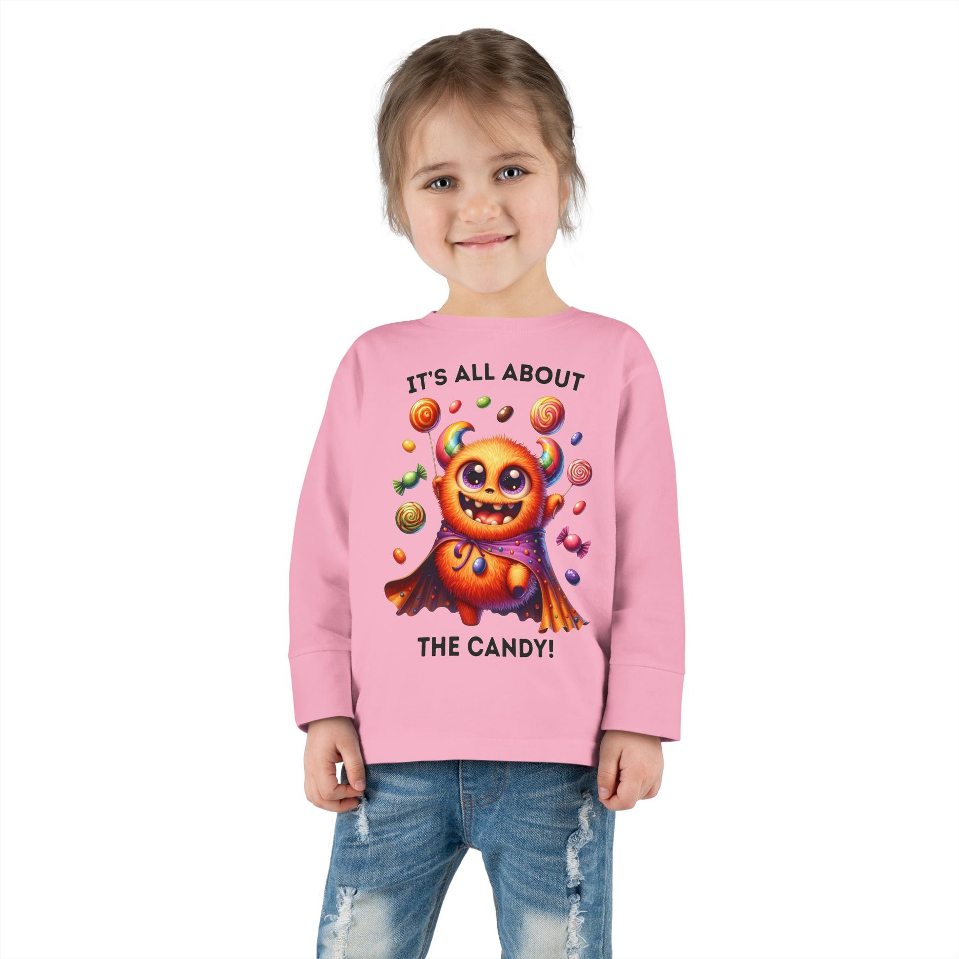 Toddler LS Tee - Halloween / Monster - It's all about the Candy! (01a)