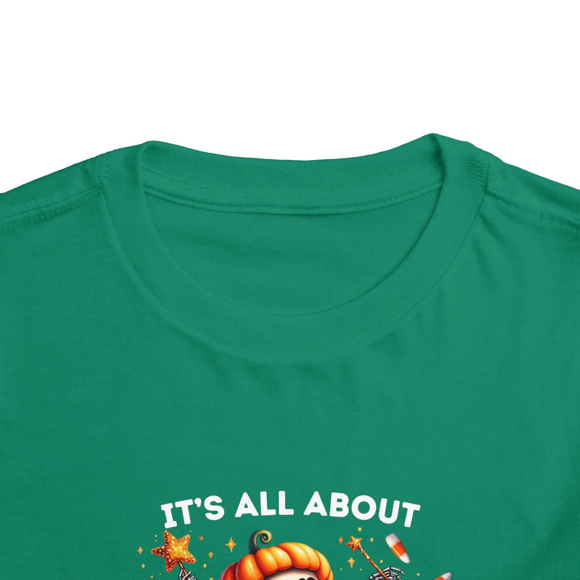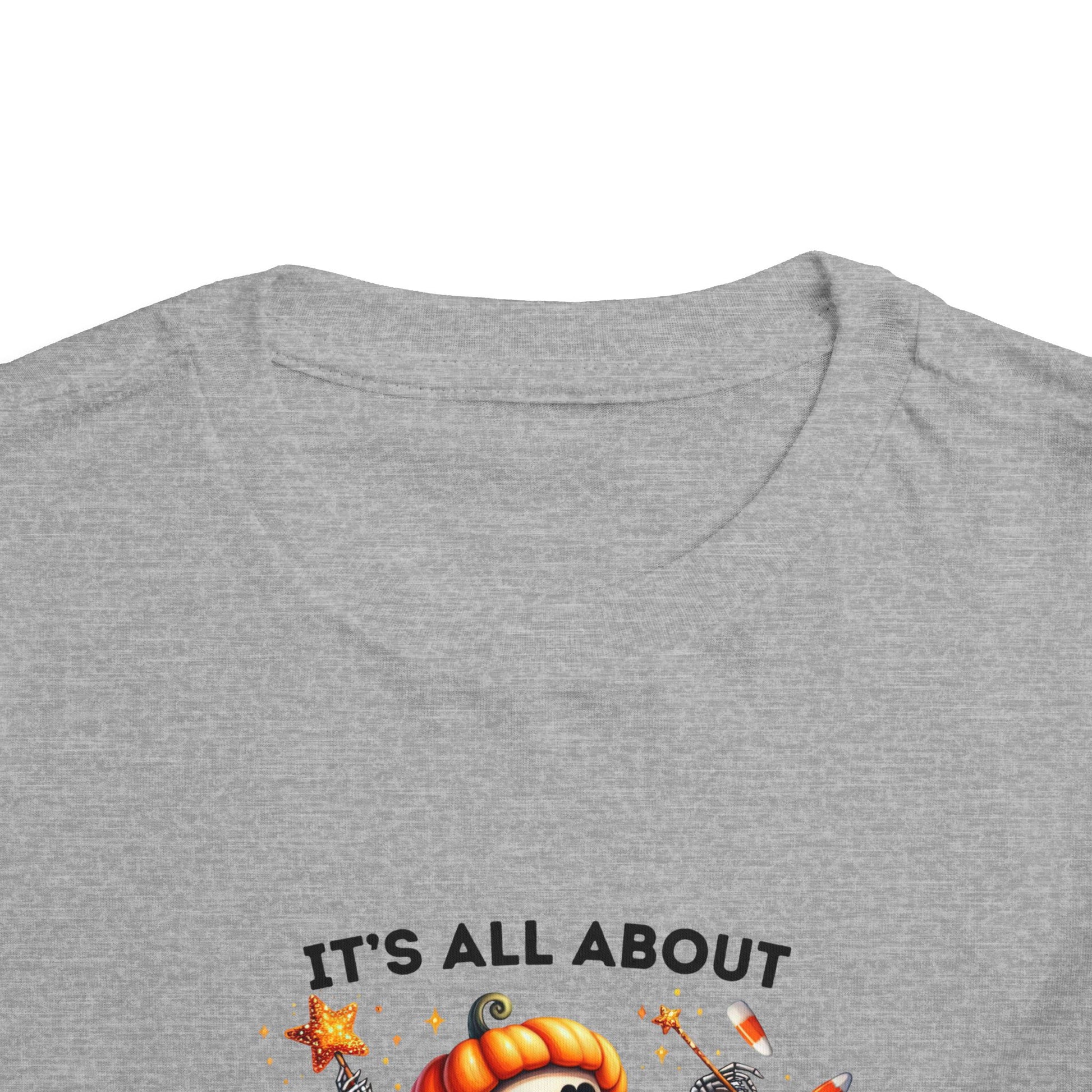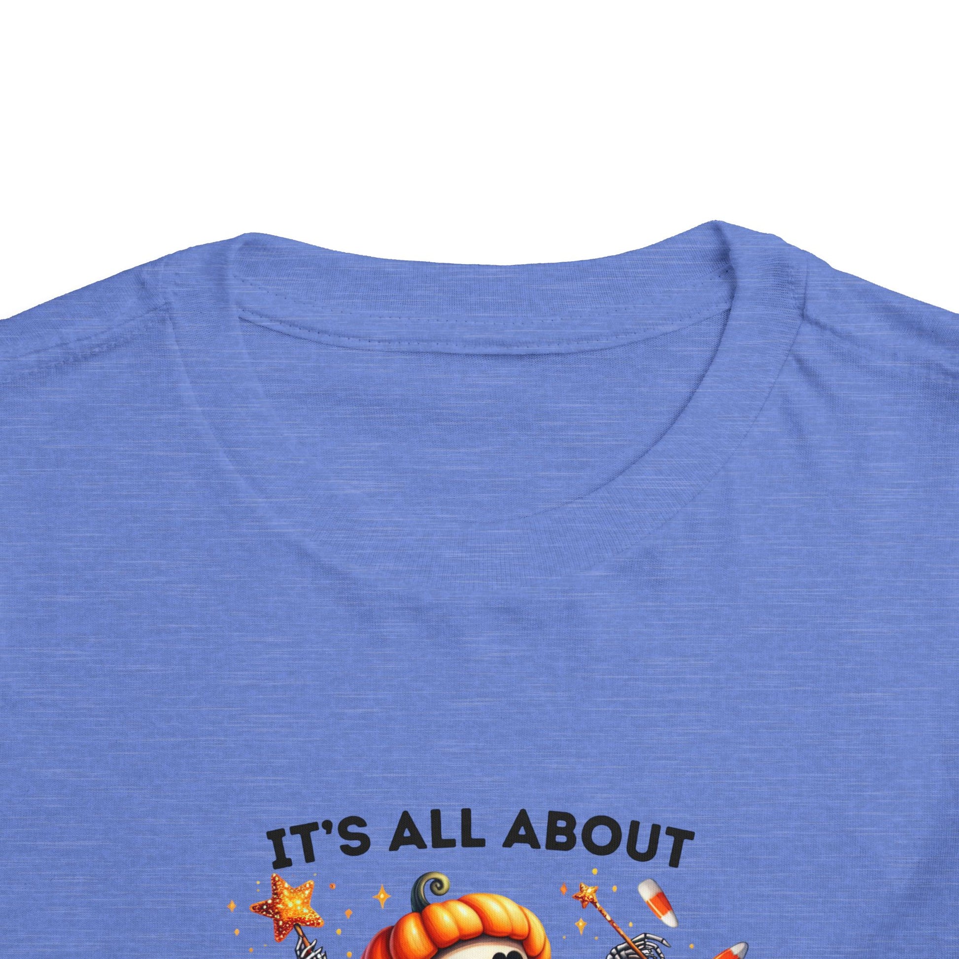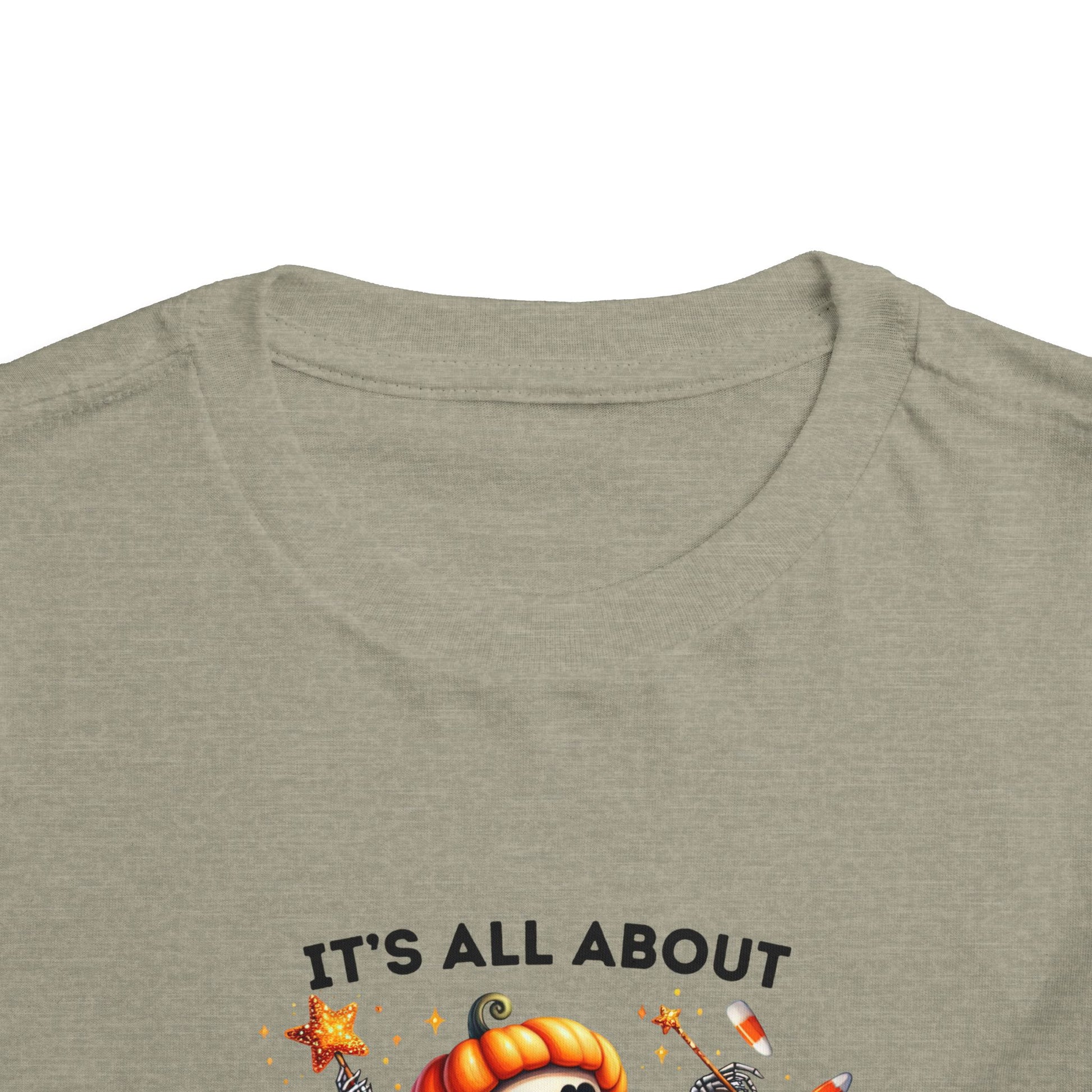 This adorable toddler tee features a perfect for Halloween, featuring a skeleton ballet dancer with floating candy and the quote 'It's all about the candy'. Suitable for school or hanging out with friends, this tee is ideal for youths looking to embrace the Halloween spirit. Perfect for Halloween parties, trick-or-treating, and school events.